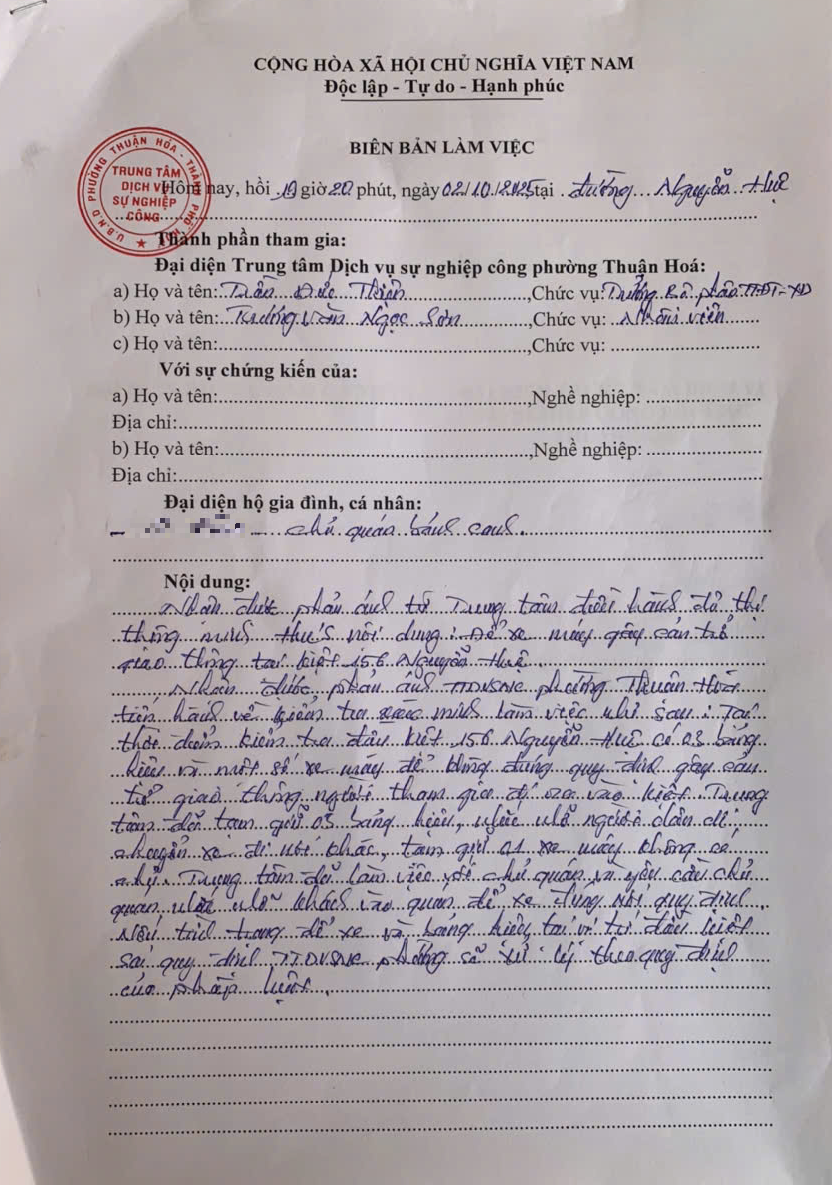 Vấn đề quý Ông/Bà phản ánh, UBND phường Thuận Hóa đã chỉ đạo Trung tâm Dịch vụ sự nghiệp công phường kiểm tra và xin thông báo kết quả như sau: