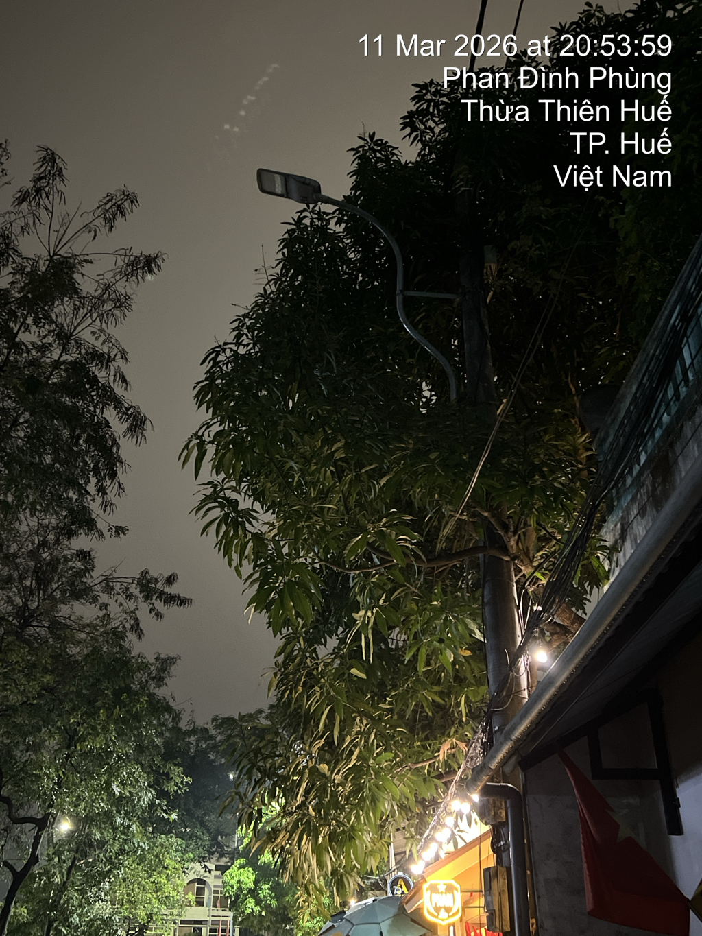 Đèn đường ở số 07 Phan Đình Phùng, Phường Thuận Hoá, TP Huế bị tắt không sáng 3 ngày từ ngày 08/3/2026 đến 11/3/2026. Đoạn đường hay xảy ra tai nạn. Đề nghị cơ quan chức năng xử lý sớm.