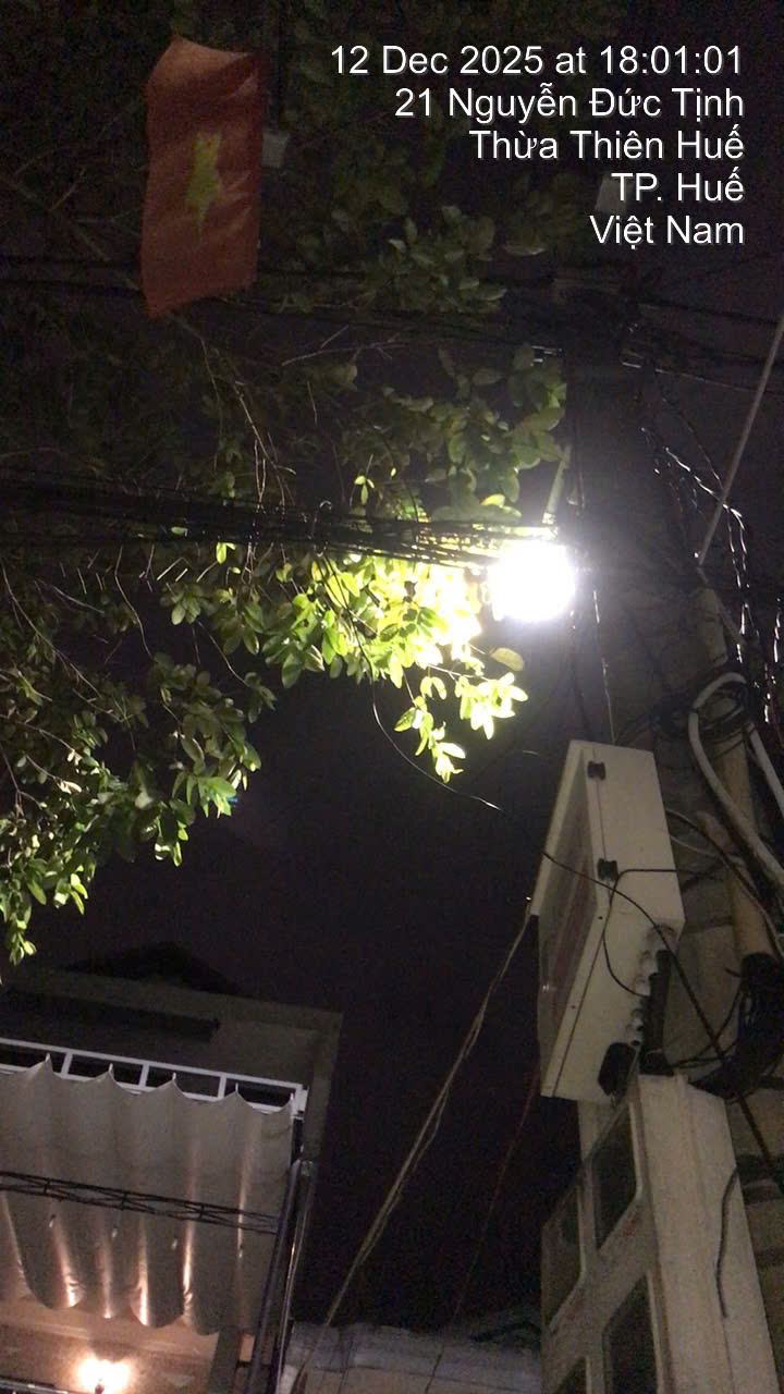 Đèn đường địa chỉ số 6 Nguyễn Đức Tịnh, Vỹ Dạ, Huế bị chập chớp nháy vào lúc 22h ngày 03/12/2025. Mong cơ quan quan tâm xử lý.