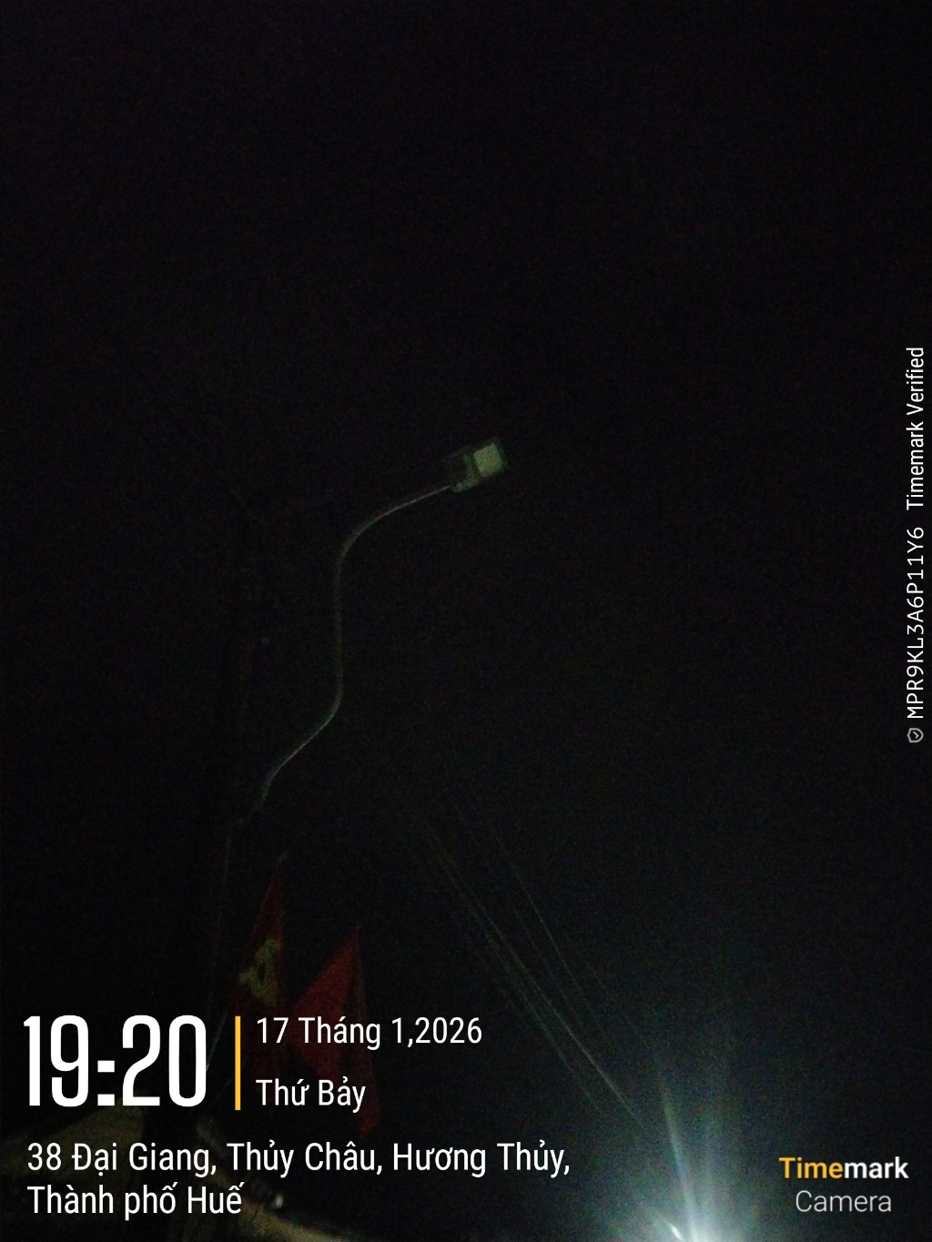 Điện đường tại tuyến đường Đại Giang, tổ Lợi Nông, phường Hương Thuỷ mấy tối nay không được chiếu sáng. Đề nghị kiểm tra cho người dân