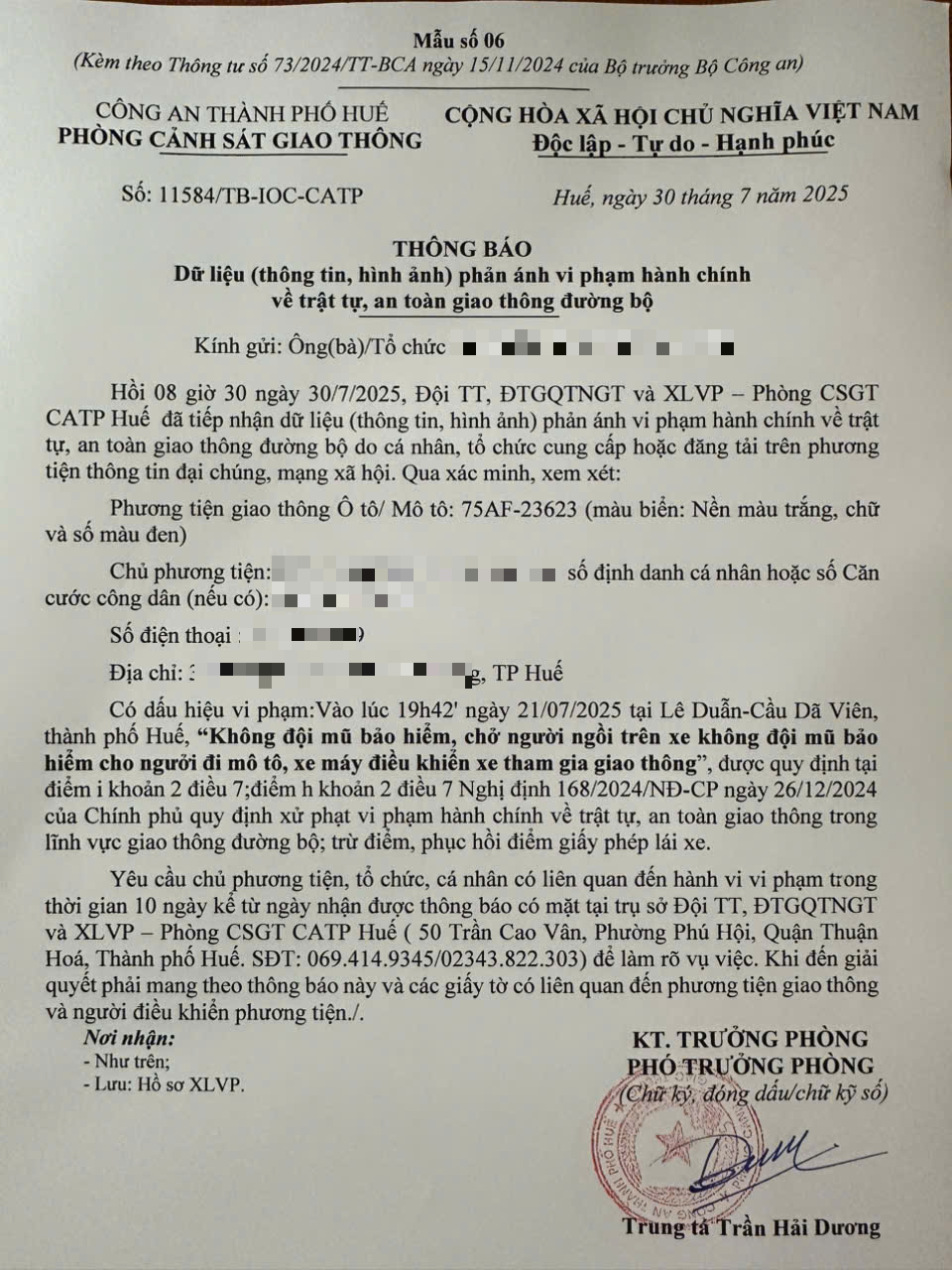 Vấn đề quý Ông/Bà phản ánh, Phòng Cảnh sát giao thông – Công an thành phố Huế đã kiểm tra và xin thông báo kết quả như sau: