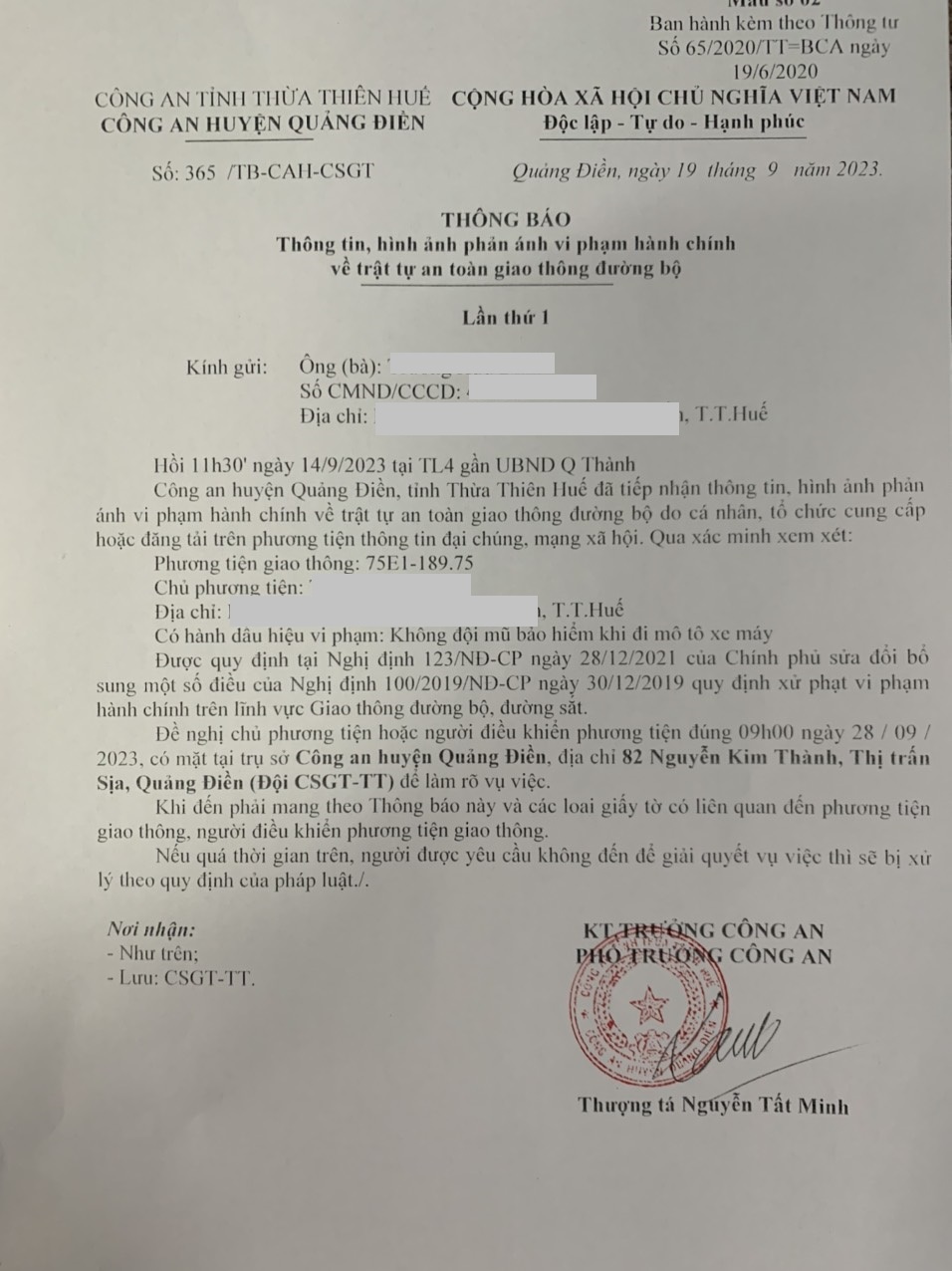 Vấn đề quý Ông/Bà phản ánh, Công an tỉnh đã chỉ đạo Công an huyện Quảng Điền xác minh và xin thông báo kết quả như sau:
