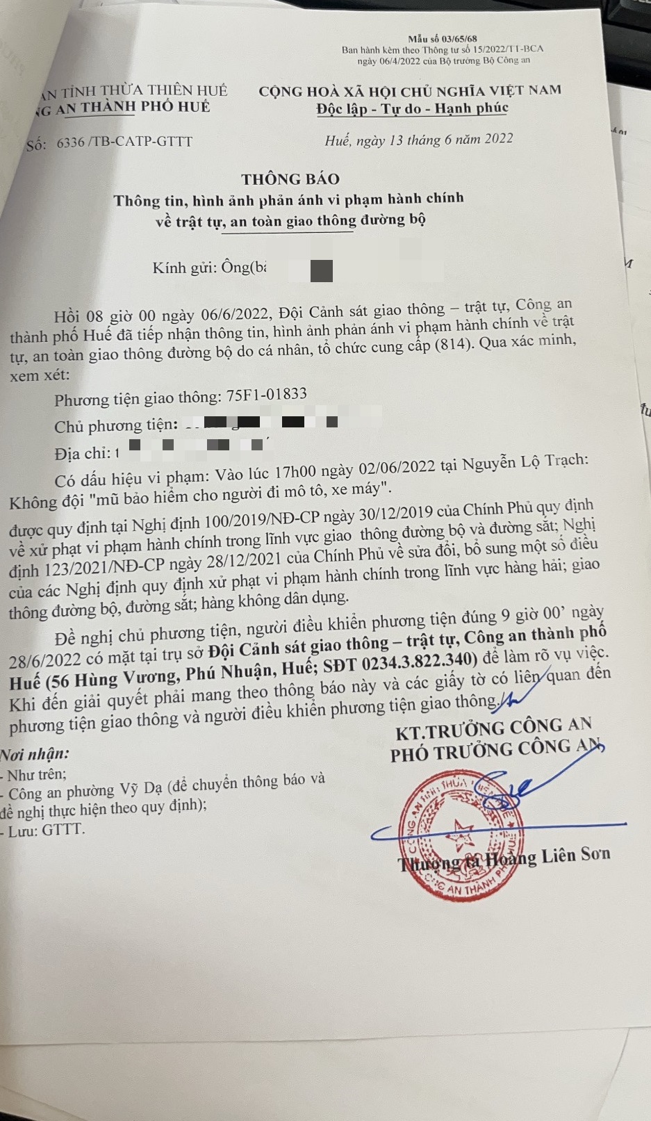 Vấn đề Ông/Bà phản ánh, Công an tỉnh đã chỉ đạo Công an thành phố Huế xác minh và trả lời như sau: