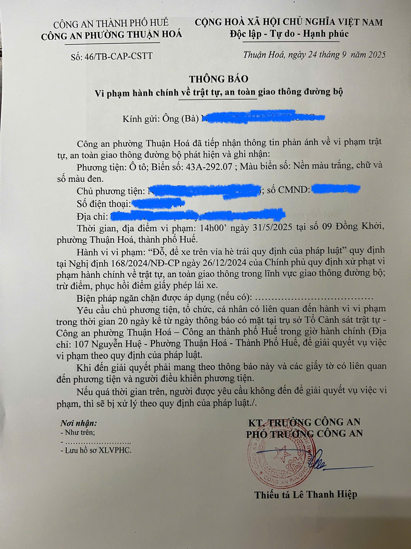 Công an phường Thuận Hóa đã lập hồ sơ, thông báo chủ phương tiện đến làm việc. Nếu quá ngày hẹn mà chủ phương tiện vẫn chưa đến trình diện tại cơ quan. Công an phường Thuận Hóa sẽ gửi thông báo cho cơ quan đăng kiểm để đưa phương tiện vào cảnh báo trên Chương trình Quản lý kiểm định.