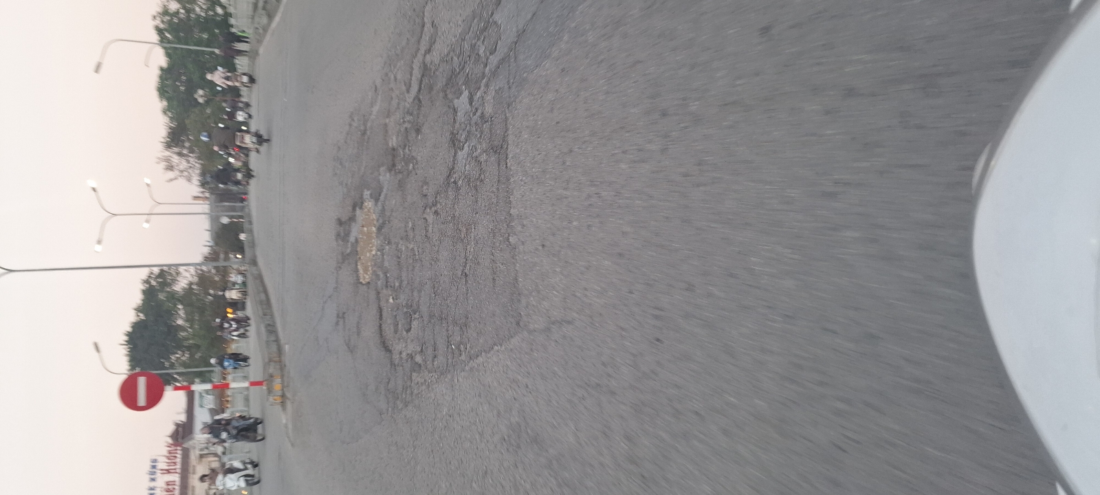 Dốc cầu Gia Hội (phía chợ Đông Ba) bị xói mòn tạo ổ gà lớn rất nguy hiểm cho người tham gia giao thông.