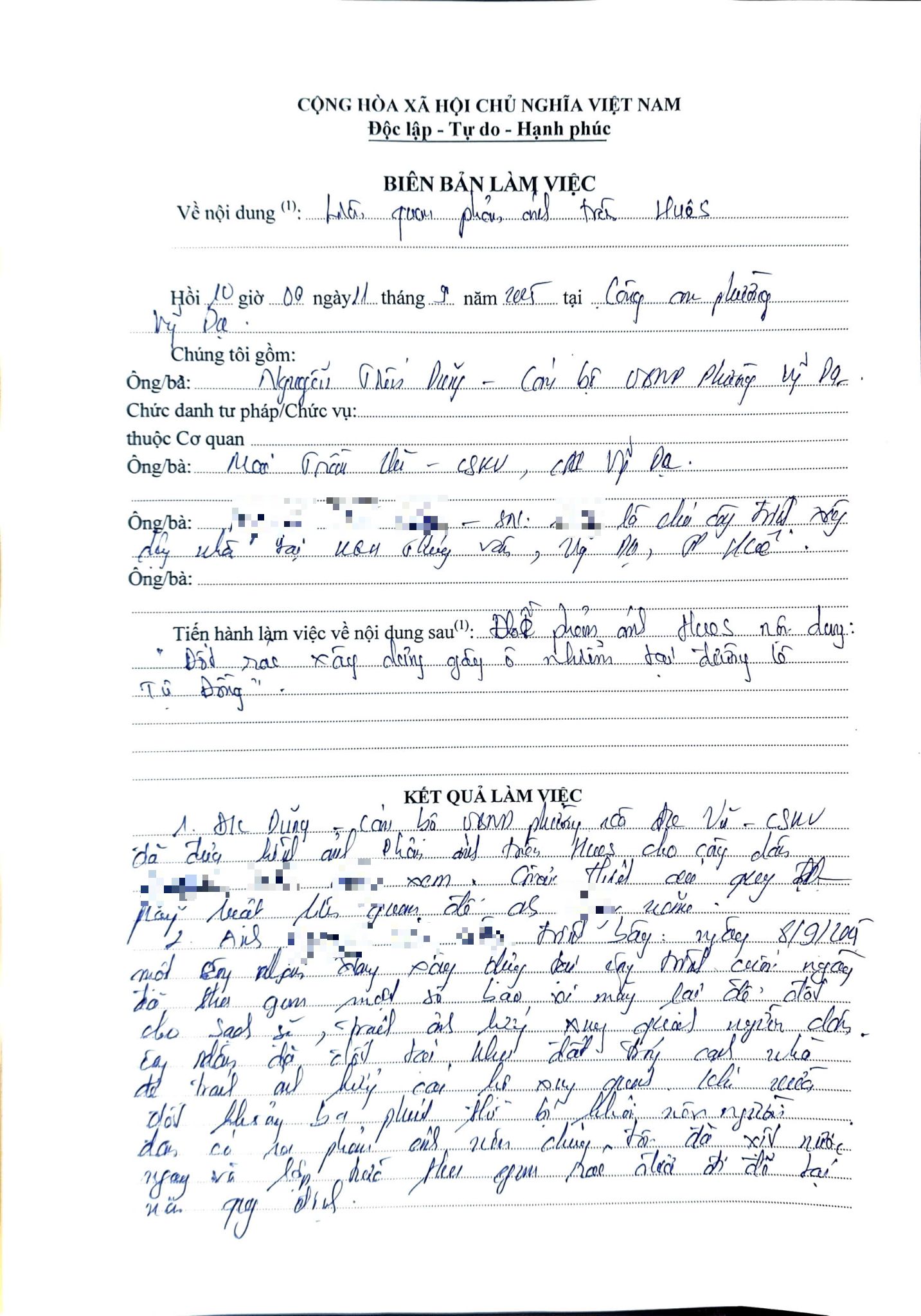 Vấn đề quý Ông/Bà phản ánh, UBND phường Vỹ Dạ xin thông báo kết quả như sau: