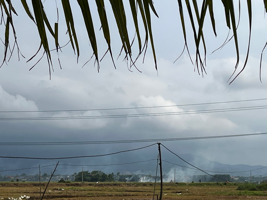 Đốt rơm gây ô nhiễm tại Bàu sau, tổ 10, thôn Hòa vang 2
