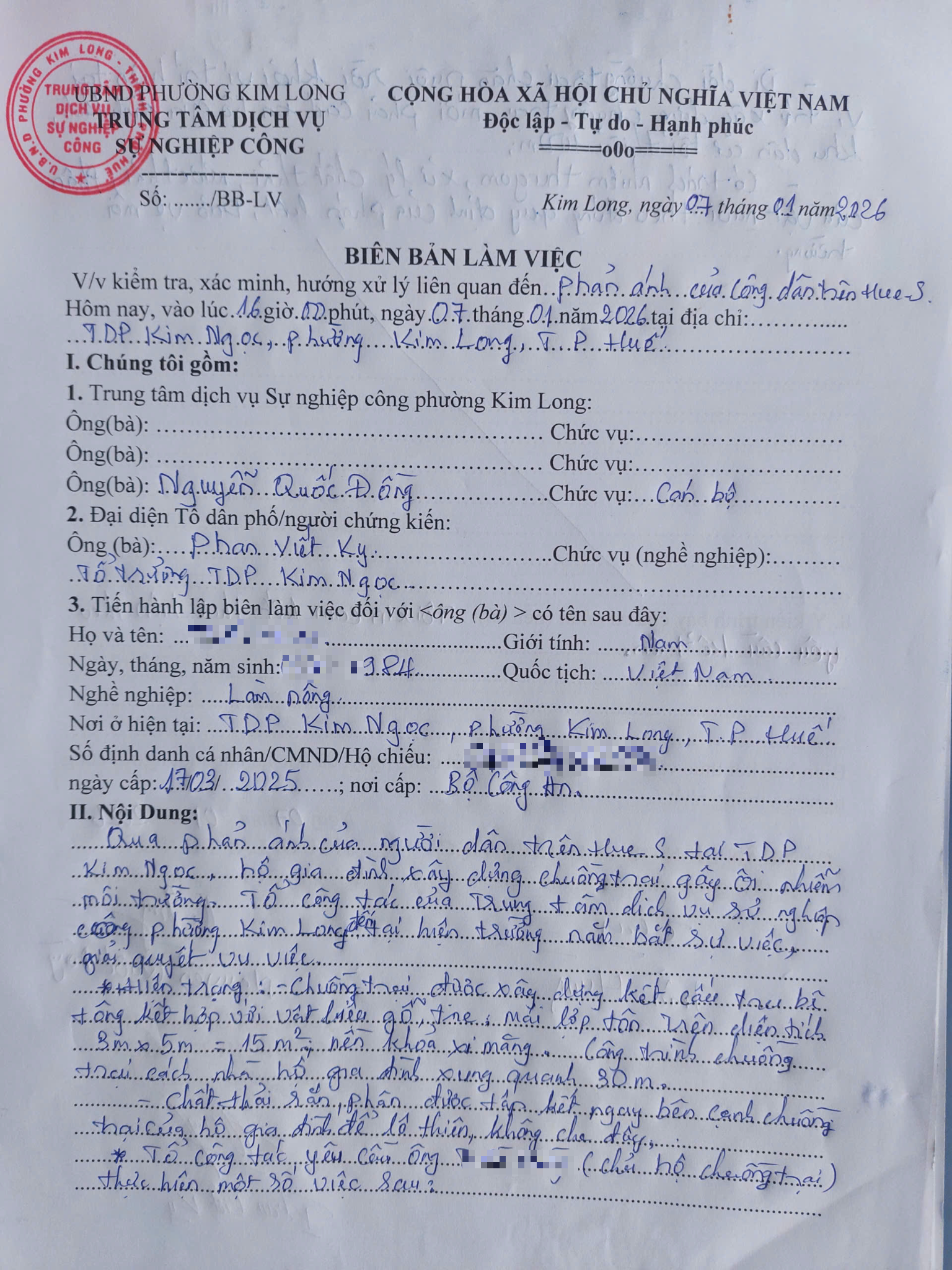 Vấn đề quý Ông/Bà phản ánh, UBND phường Kim Long xin thông báo kết quả như sau:
