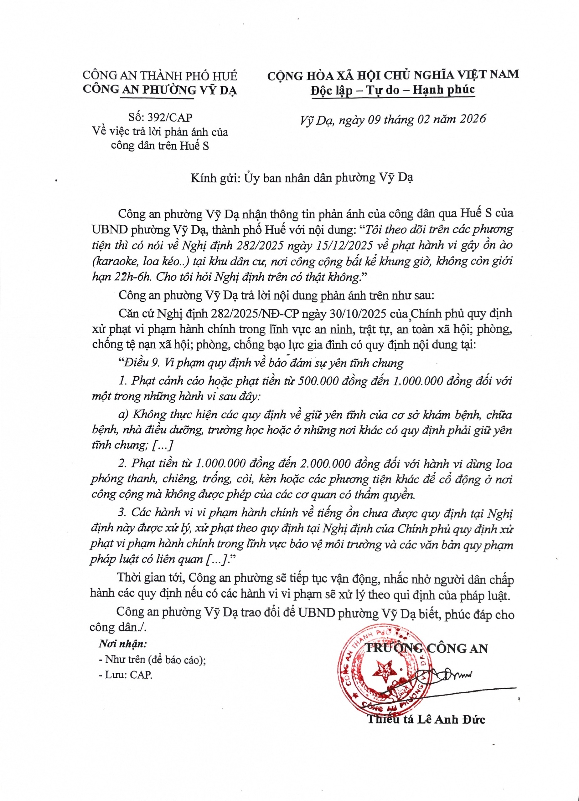Vấn đề quý Ông/Bà hỏi, UBND phường Vỹ Dạ xin thông báo kết quả như sau: