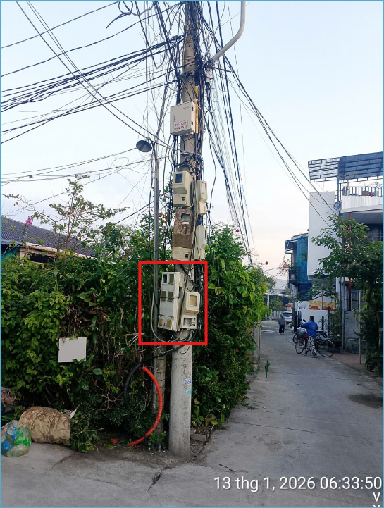 Hộp điện bị hư hỏng nắp đậy tiềm ẩn nguy hiểm cho người dân tại cột điện số nhà 19, hẻm 72 Kiệt 34 Đường Dương Thiệu Tước, Tổ 2, Phường Thanh Thuỷ, TP Huế. Vui lòng kiểm tra, xử lý.