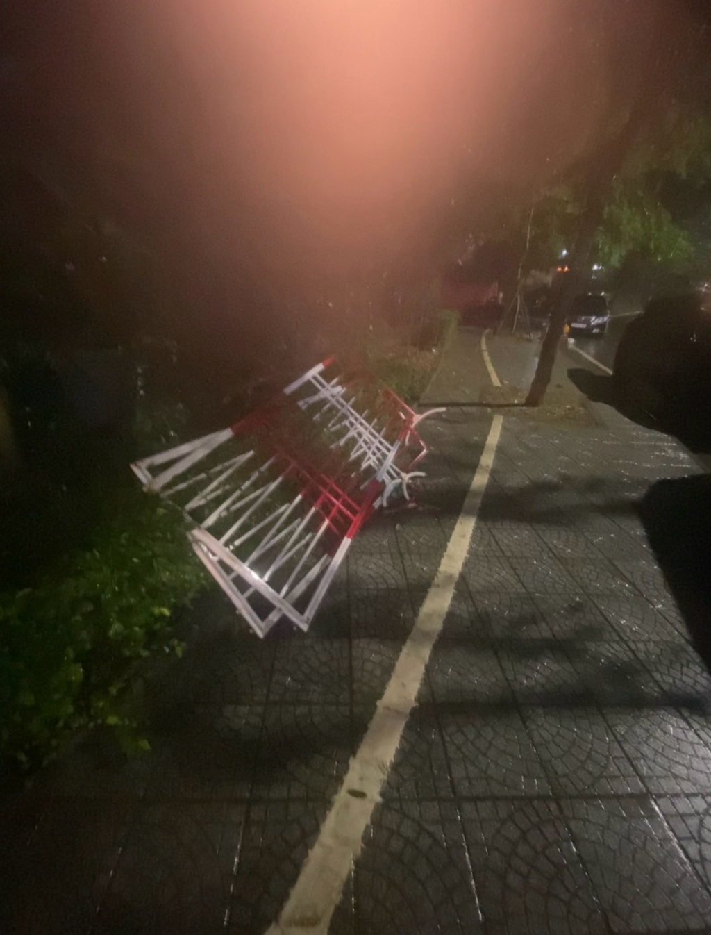 Khung chắn đường khi lũ lụt không được đem về ở ngã tư Phan Chu Trinh - Điện Biên Phủ.