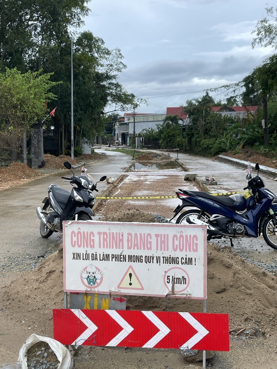 Thi công bó vỉa không giống ai, chắn các lối vào nhà dân trong khi mặt đường chưa làm, vỉa hè chưa làm rất bất tiện cho người dân khi từ nhà ra đường và ngược lại. Nhà nào không vào được nhà phải tự đổ đất lấp vỉa hè và mớp đường mới vào được nhà.