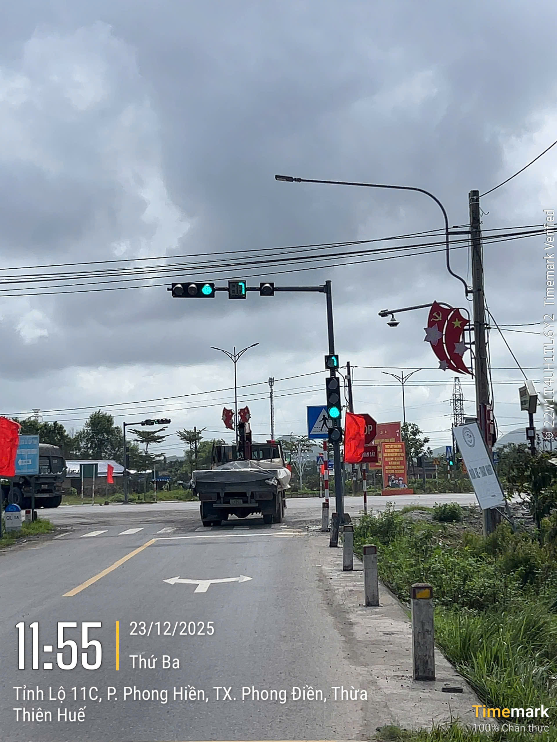 Tại nút giao thông nêu trên, hệ thống đèn tín hiệu đang hoạt động với đèn xanh tròn và đèn mũi tên xanh rẽ phải bật đồng thời, phù hợp với quy định tại Quy chuẩn kỹ thuật quốc gia về báo hiệu đường bộ QCVN 41:2019/BGTVT. Do đó, việc lắp đặt và vận hành hệ thống đèn tín hiệu như hình ảnh phản ánh là đúng quy định, không phải lỗi kỹ thuật.