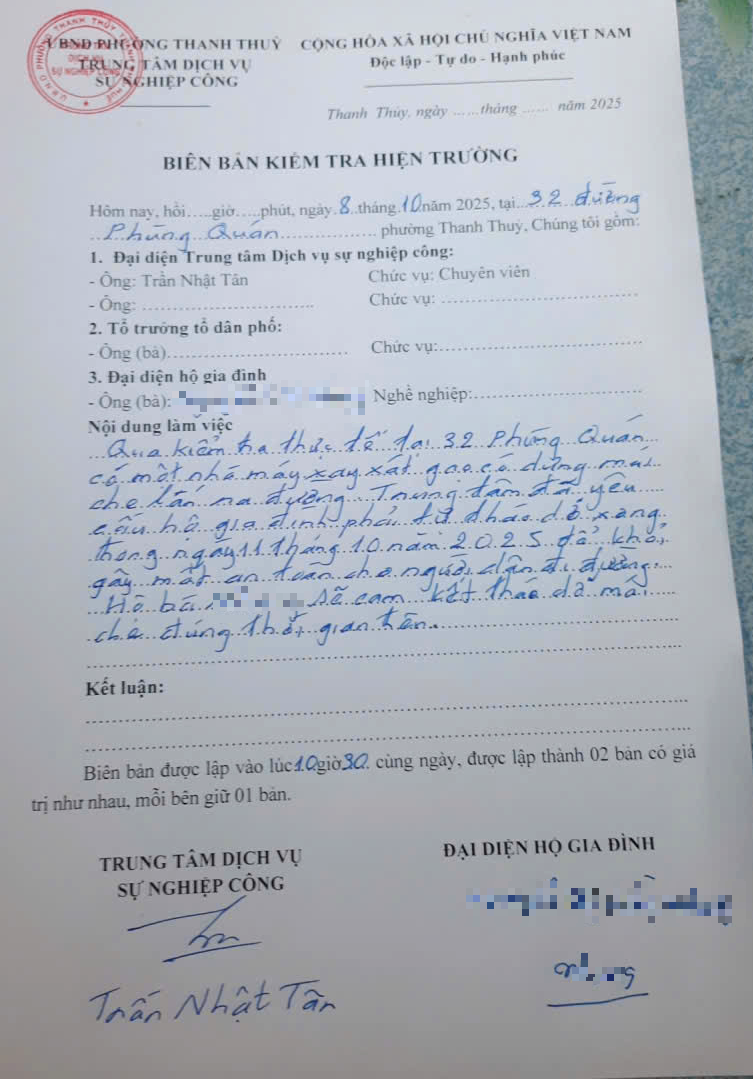 Sau khi nhận phản ánh, UBND phường đã chỉ đạo Trung tâm Dịch vụ sự nghiệp công giải quyết. Qua kiểm tra hiện trường, thì có một mái che lấn ra khỏi phạm vi lô đất, Trung tâm đã yêu cầu hộ gia đình phải tháo dỡ ngay; hộ gia đình xin cam kết tháo dỡ xong trong ngày 11 tháng 10 năm 2025 để khỏi gây mất an toàn cho người dân đi đường. Hộ gia đình cam kết sẽ tháo dỡ phần mái che đúng thời gian trên (có biên bản kèm theo).