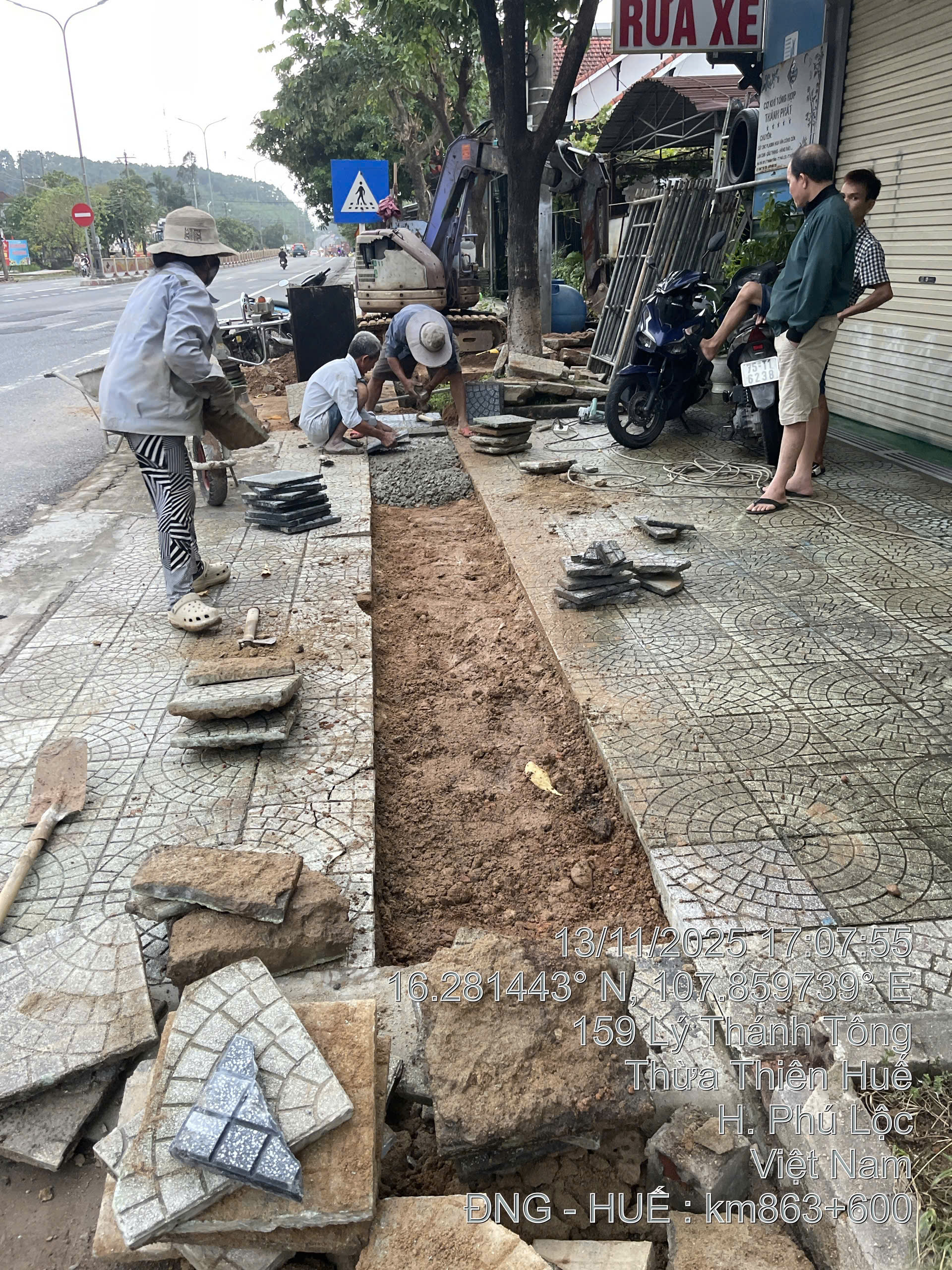 Vỉa hè đường Quốc lộ 1A qua địa bàn xã Phú Lộc cụ thể ở địa chỉ 171 Lý Thánh Tông, xã Phú Lộc, Thành phố Huế đang được đào lên để thi công đường ống của VNPT. Nhưng mà sau khi đào lên thả đường ống xuống thì đơn vị thi công làm ẩu khi lát lại gạch vỉa hè dùng gạch cũ đã bể trám xi măng lại, có những đoạn viên gạch không có hồ dầu dễ bị bong lên, lúc đi qua gập ghềnh gây mất an toàn cho người đi bộ. Tổng thể vỉa hè nhìn rất nham nhở, mất mỹ quan. Đề nghị cơ quan chức năng xem xét xử lý thay lại gạch nguyên vẹn và thi công chắc chắn hơn.