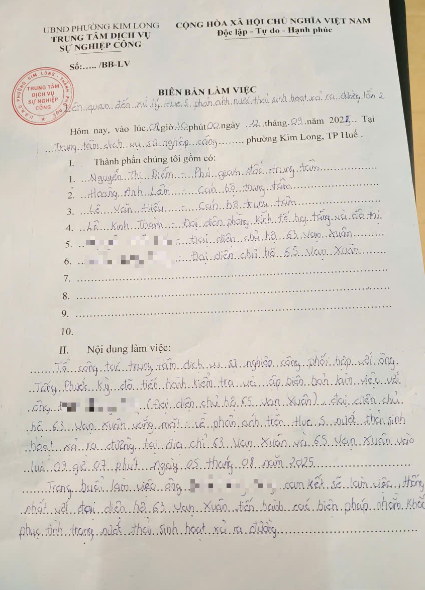 Vì vậy ngày 12/9/2025, Tổ kiểm tra đã phối hợp với Phòng Kinh tế, Hạ tầng và Đô thị phường tiến hành lập biên bản làm việc lần thứ hai với đại diện của cả hai hộ. Tại buổi làm việc, các hộ đã thống nhất cam kết sẽ liên hệ với Trung tâm Khai thác hạ tầng để xin phép xẻ đường, đấu nối ống thoát nước, nhằm xử lý triệt để tình trạng nước thải chảy ra đường. Nguyên nhân được xác định là do hệ thống hầm rút của gia đình không hoạt động, khiến nước thải sinh hoạt tràn ra ngoài. Tổ kiểm tra đã lập biên bản làm việc yêu cầu chủ hộ 63 và 65 Vạn Xuân khắc phục tình trạng trên và các hộ hứa sẽ khắc phục, nếu tái phạm sẽ chịu trách nhiệm trước pháp luật (có biên bản kèm theo).