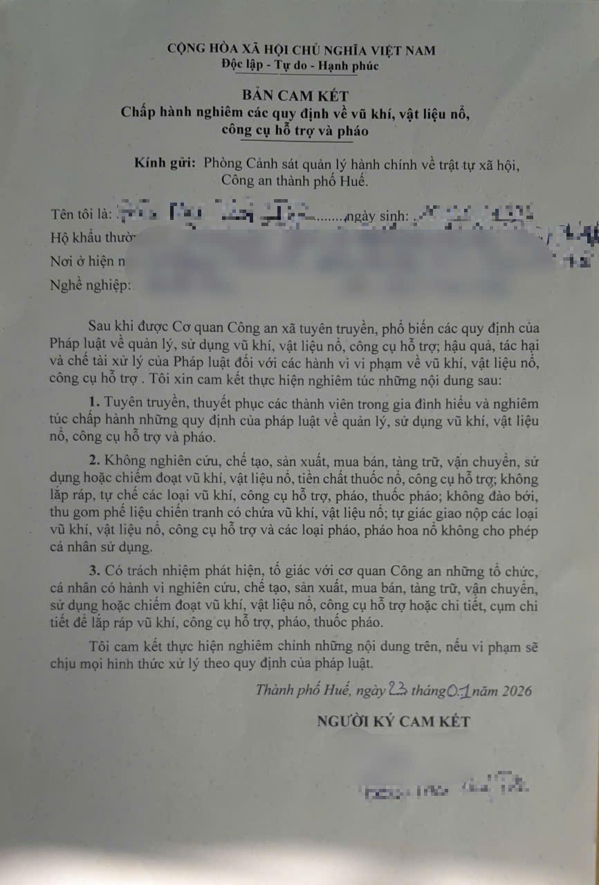 Qua làm việc, Bà Đ.M.T.T, sinh năm 1995, là chủ tài khoản Facebook “Thủy Tiên”, thừa nhận có đăng tải các nội dung nêu trên kèm hình ảnh pháo hoa Bộ Quốc phòng sản xuất trong khoảng thời gian từ ngày 15/01/2026 đến ngày 17/01/2026. Sau khi nhận thức được hành vi đăng tải là không đúng quy định pháp luật, bà T đã tự giác gỡ bỏ bài viết.