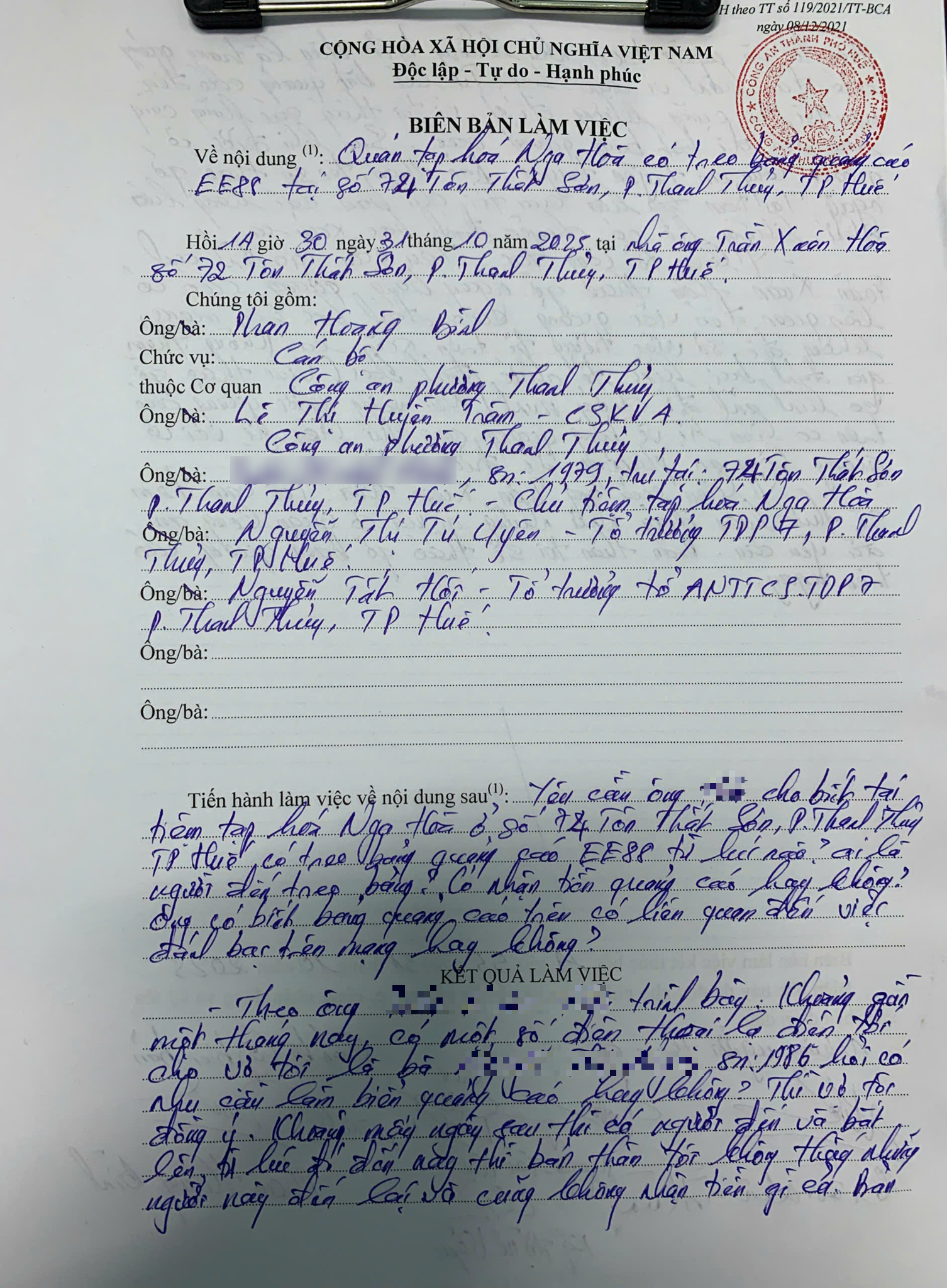 Sau khi nhận phản ánh, UBND phường đã chỉ đạo Phòng Văn hóa - Xã hội phối hợp với Công an phường, hệ thống chính trị Tổ dân phố 7 đến trực tiếp hộ kinh doanh, buôn bán làm việc, vận động tháo gỡ bảng quảng cáo. Hiện hộ dân đã chấp hành đảm bảo (Có hình ảnh kèm theo).