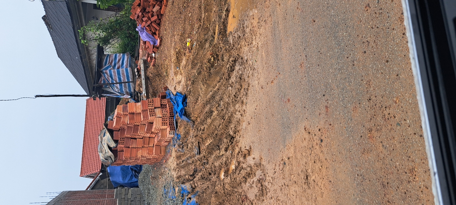 Đối diện nhà 46 đường Phùng Quán, phường Thanh Thủy, Tp Huế, công trình nhà ở xây dựng làm đất cát bùn ra mặt đường gây ô nhiễm ảnh hưởng người đi đường.