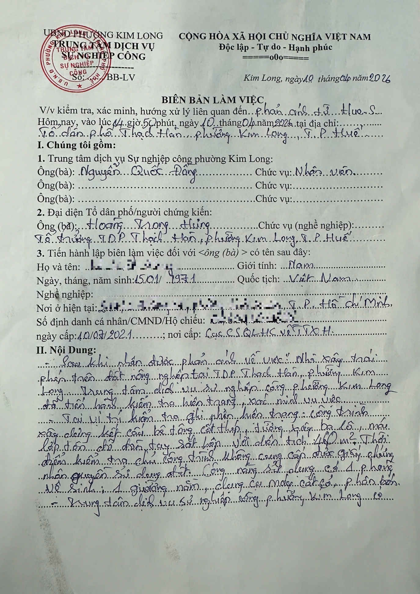 Vấn đề quý Ông/Bà phản ánh, UBND phường Kim Long xin thông báo kết quả như sau: