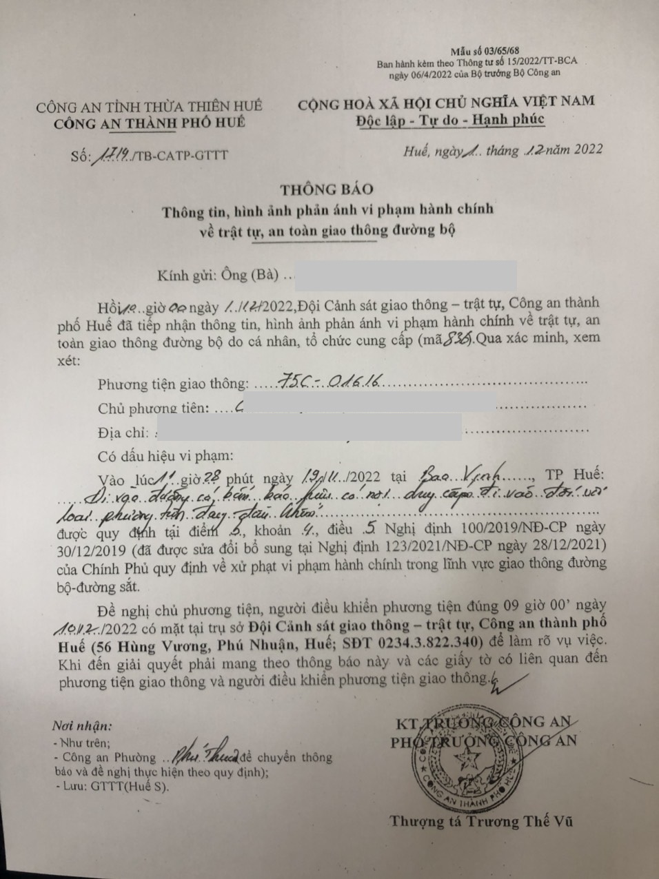 Vấn đề quý Ông/Bà phản ánh, Công an tỉnh đã chỉ đạo Công an thành phố Huế kiểm tra và xin thông báo kết quả xử lý như sau: