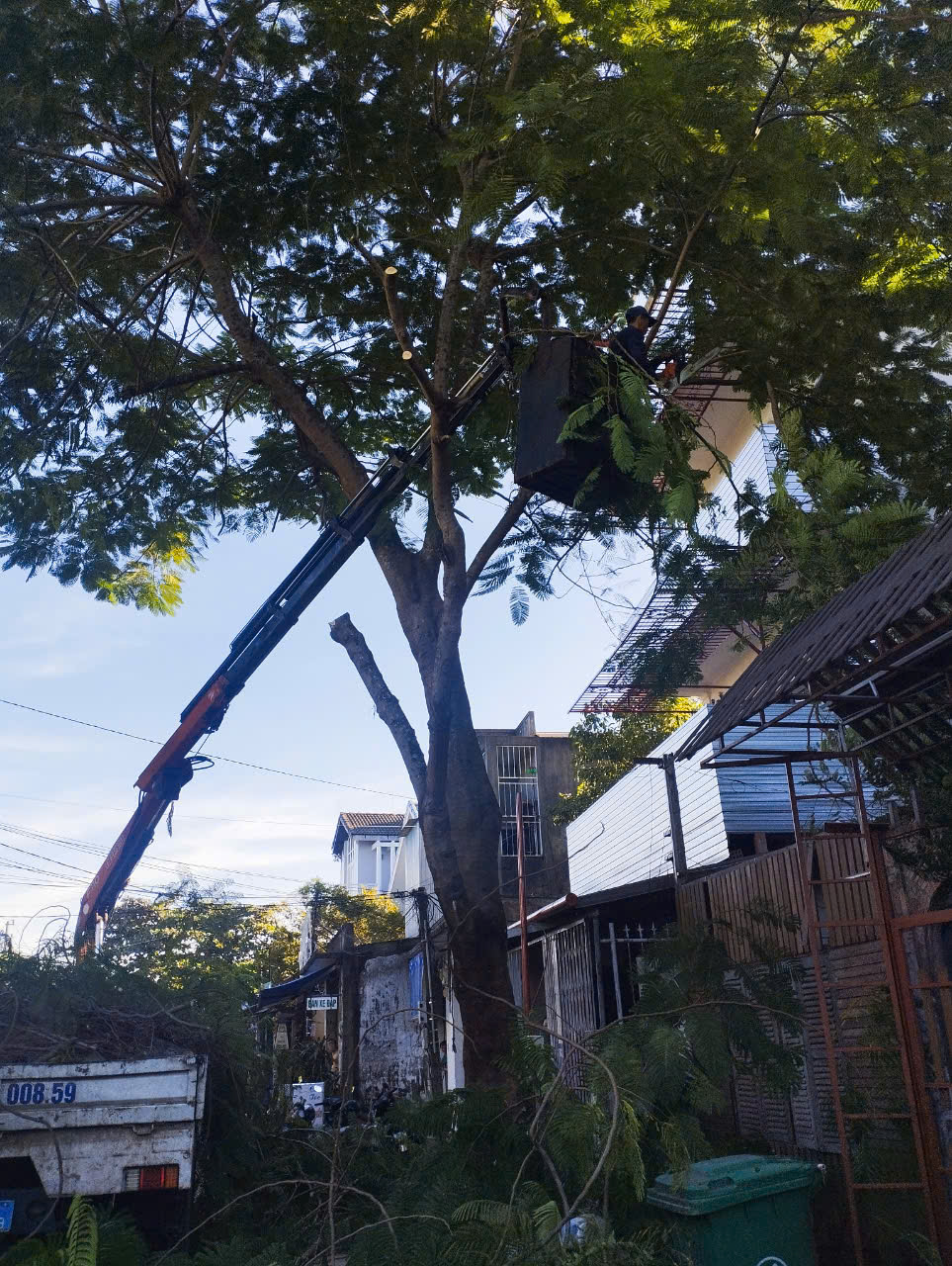 Trung tâm đã cắt mé cây xanh tại 311 Nguyễn Sinh Cung đảm bảo an toàn cho người dân trong mùa mưa bão. (Đính kèm hình ảnh)
