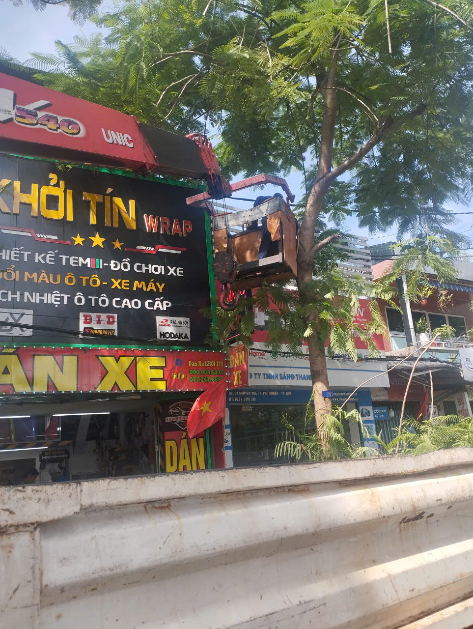 Trung tâm đã cắt mé cây phượng tại địa chỉ 91-93 Nguyễn Huệ đảm bảo an toàn cho người dân. (Đính kèm hình ảnh)
