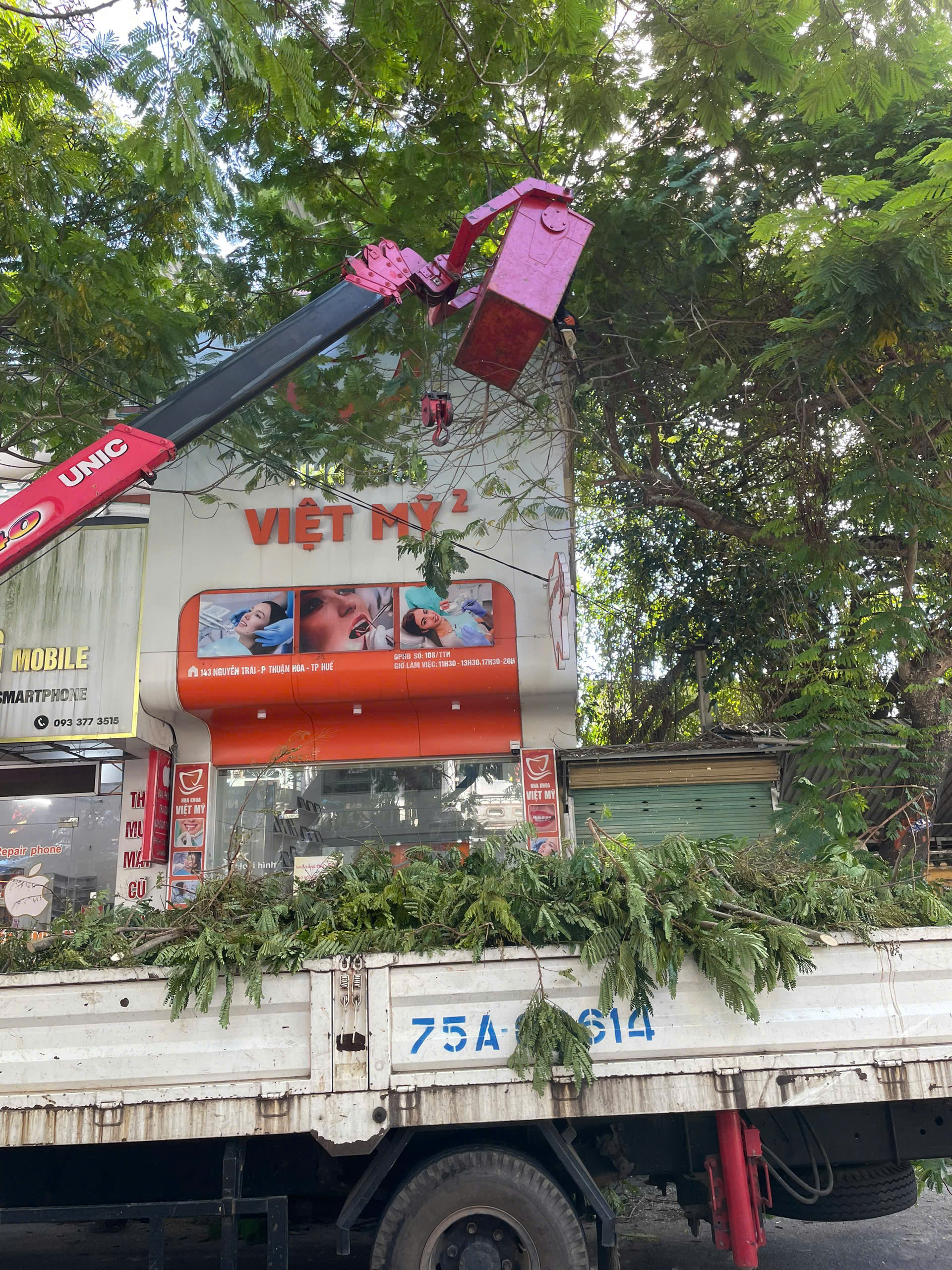 Trung tâm đã cắt mé cây xanh tại 143 Nguyễn Trãi đảm bảo an toàn cho người dân trong mùa mưa bão (đính kèm hình ảnh).