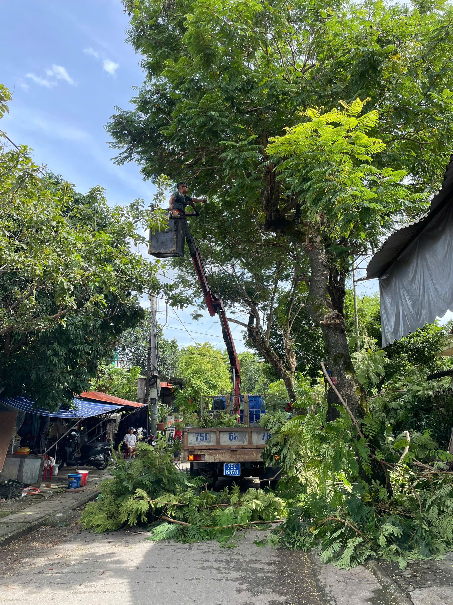 Trung tâm đã cắt mé cây xanh tại 49 Nguyễn Phúc Thái đảm bảo an toàn cho người dân trong mùa mưa bão sắp đến (đính kèm hình ảnh).