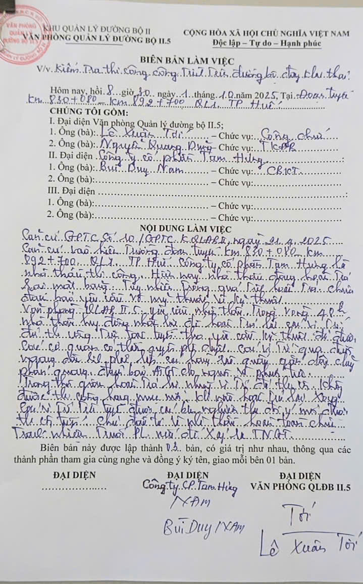 Văn phòng đã kiểm tra và yêu cầu đơn vị thi công khẩn trương hoàn thiện công tác hoàn trả trước ngày 04/10/2025. Hiện nay, đơn vị thi công đang triển khai khắc phục.