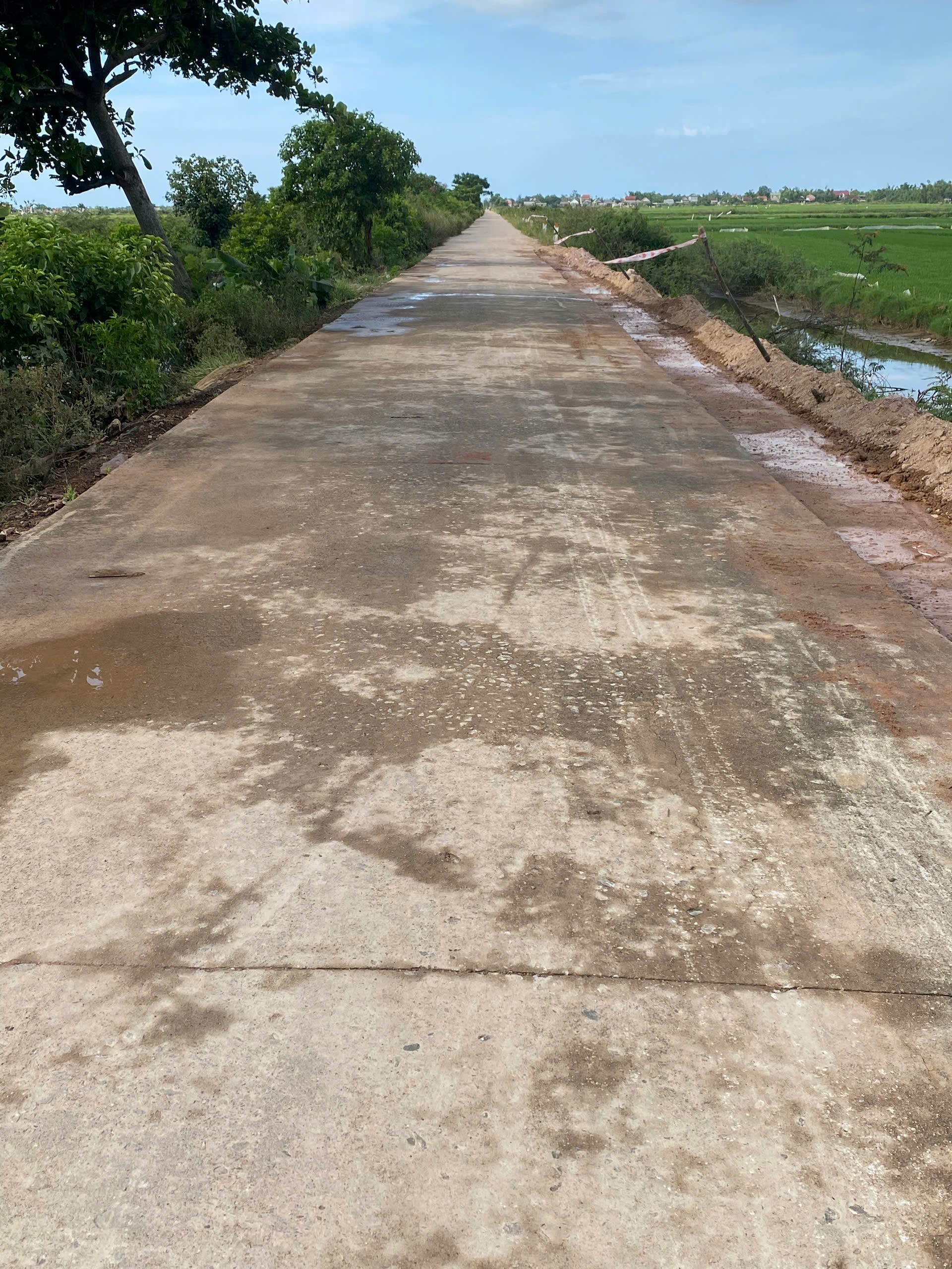 Hiện nay, dự án đã thi công xong phần nền đường chuẩn bị triển khai thi công phần mặt đường bê tông. Tuy nhiên, để đảm bảo việc đi lại, vận chuyển nông sản của bà con trong mùa vụ vì đây là trục đường huyết mạch nên chưa thể thi công phần mặt đường bê tông được (thời gian thi công, bảo dưỡng mặt đường khoảng 30 ngày). Sau khi bà con gặt xong, dự kiến sau ngày 15/9/2025 sẽ triển khai thi công phần mặt đường.