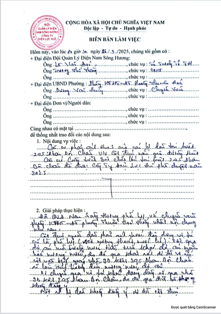 Đội quản lý điện Nam Sông Hương đã triển khai thực hiện ngay trong quý 3/2025 như đã cam kết. Tuy nhiên, vị trí dự kiến dựng cột phù hợp với kết cấu lưới điện thì có một số gia đình cạnh đó không đồng ý, nên không thực hiện được (có xác nhận của đại diện phòng kinh tế hạ tầng phường Thuận Hóa).
