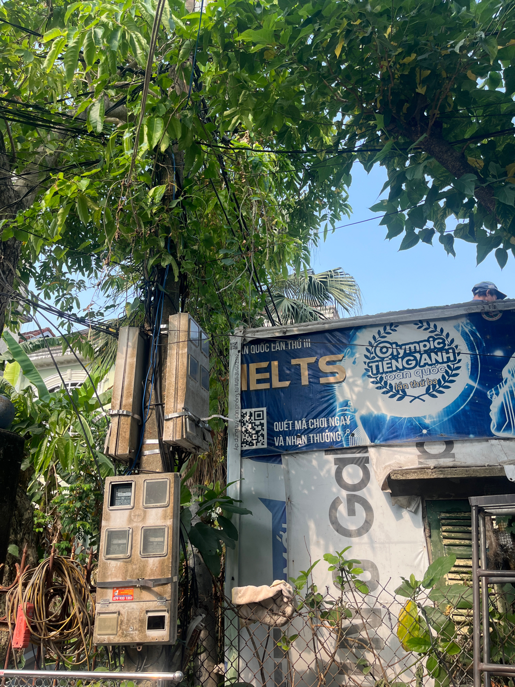 Ảnh được chụp và quay video lại vào lúc 8g30p ngày 09/4/2026. Đề nghị đơn vị liên quan đến khảo sát rồi di dời đường dây điện cao thế sát mái tôn của dân, dây điện chằng chịt cọ sát mái tôn sẽ ảnh hưởng đến tính mạng nếu có sự cố cháy nổ xảy ra với tình trạng nắng nóng như thế này. Địa chỉ dây điện Kiệt 6/6 Văn Cao, Phường Vỹ Dạ, TP Huế.