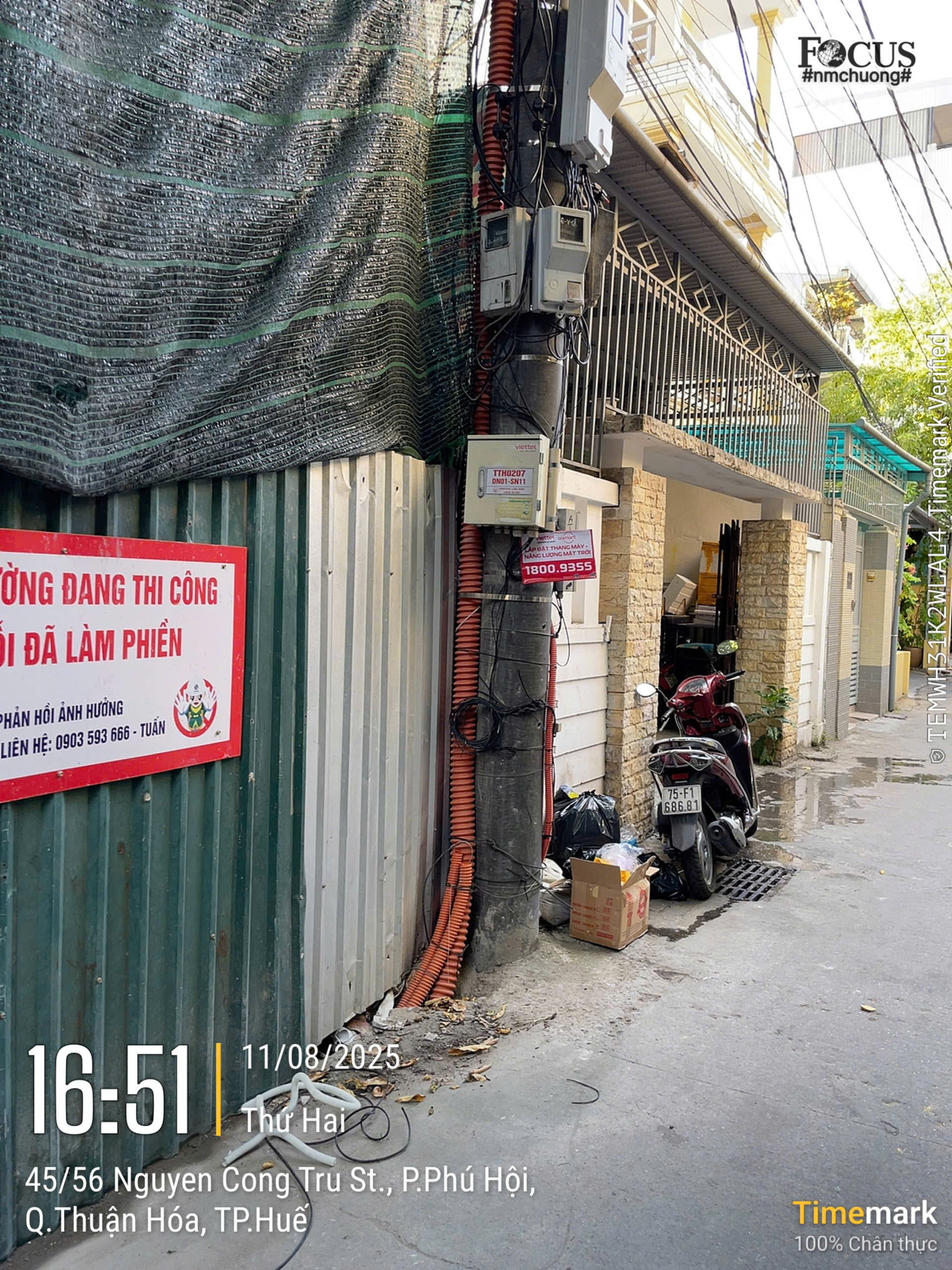 Dây điện nguy hiểm. Cuộn dây để ở đây đã lâu (khoảng 2 tháng) lấn ra đường hẻm số nhà 35 Nguyễn Thái Học gây cản trở đi lại của bà con trong kiệt này, hơn nữa chúng tôi không biết có điện hay không. Mong Hue- S có ý kiến để giải quyết.