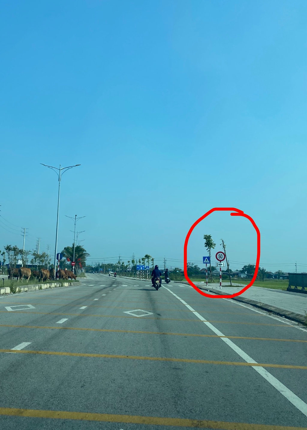 Biển báo hạn chế tốc độ 50km/h không phù hợp ở đoạn Võ Văn Kiệt nối dài (về biển Thuận An). Đoạn này tốc độ chỉ 60km, khúc cua rộng, 3 làn đường. Thì việc hạn chế xuống 50km/h không cần thiết, việc này chỉ khiến tài xế giật mình phanh, gây nguy hiểm hơn. Đề nghị xem xét gỡ bỏ. Ảnh chụp 08/4/2026.