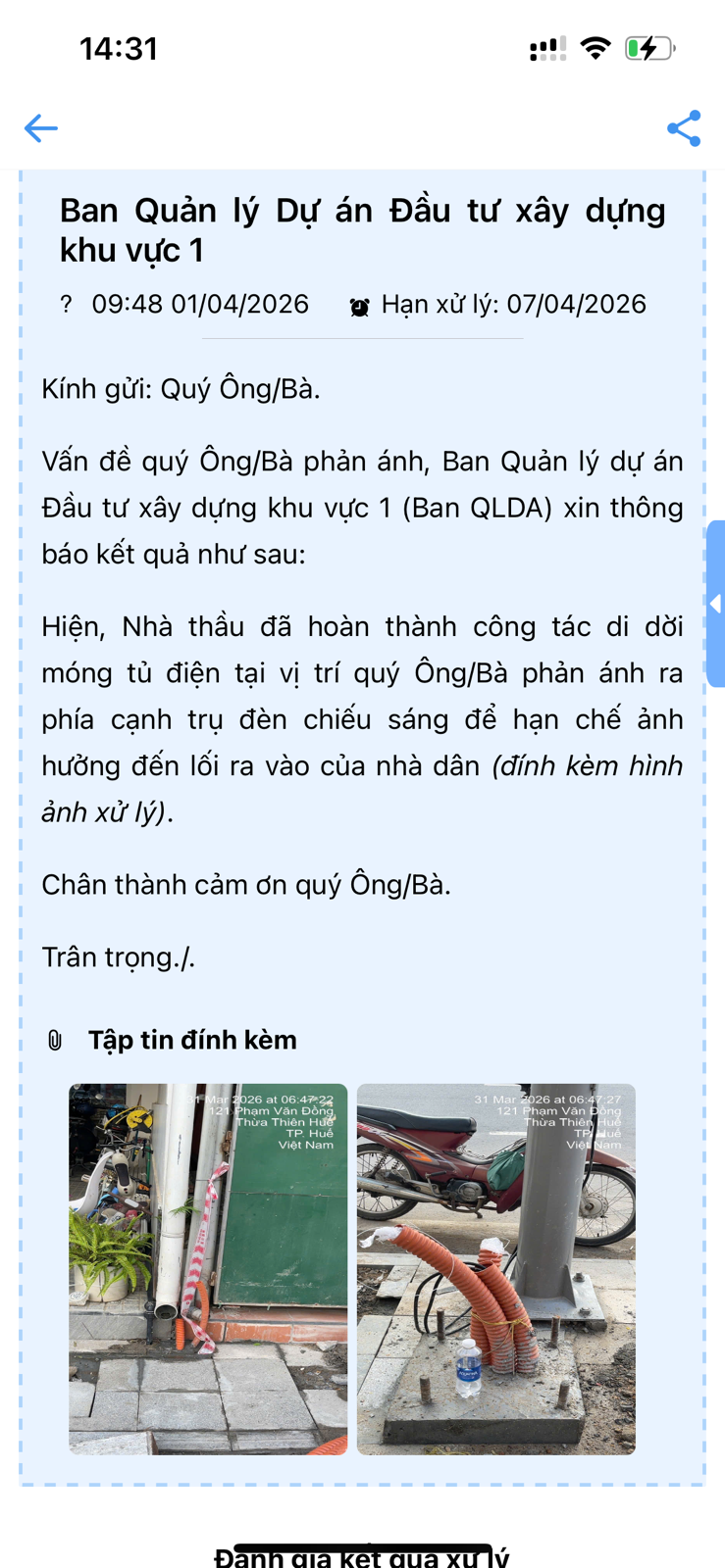 Phản ánh đã được tiếp nhận