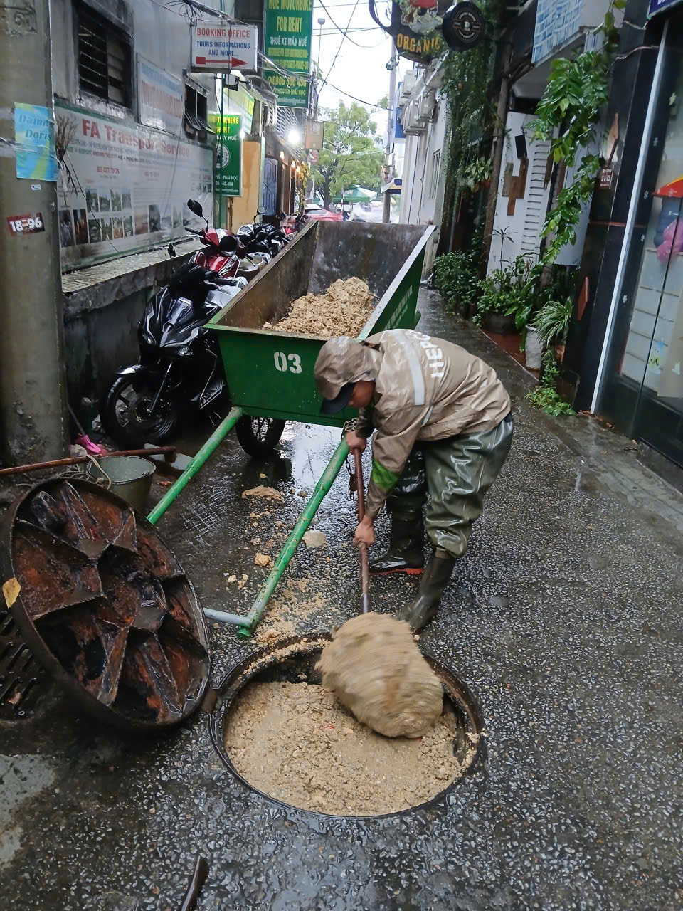 Trung tâm nhận được phản ánh cống tại Kiệt 42 Nguyễn Công Trứ bị tắc gây ngập úng, bốc mùi, mất vệ sinh. Trung tâm đã tổ chức nạo vét các hố thu tại kiệt này (đính kèm hình ảnh) và xác định nguyên nhân do một lượng lớn dầu mỡ đông kết làm tắc cống.