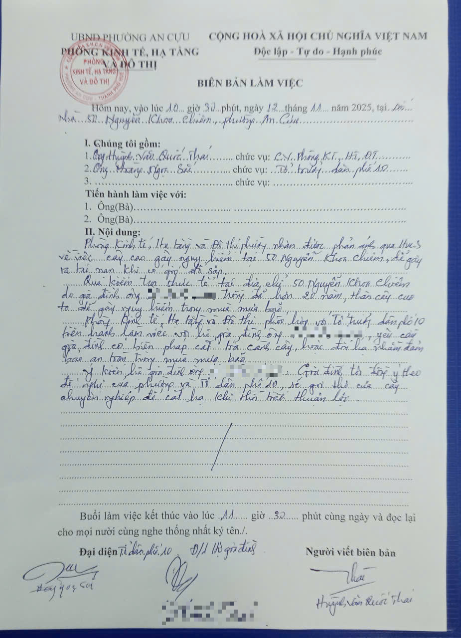 Phòng Kinh tế, Hạ tầng và Đô thị phường An Cựu đã làm việc và trao đổi với hộ gia đình ông L.B.T, trú tại 50 Nguyễn Khoa Chiêm - phường An Cựu (Có biên bản kèm theo).