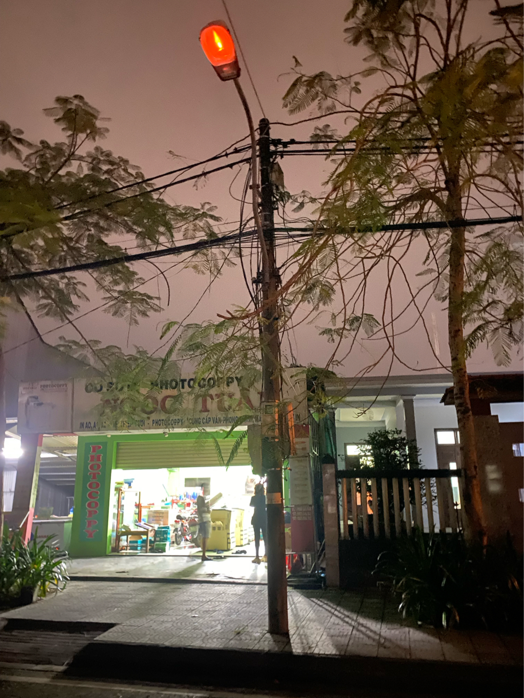 Bóng đèn khi đỏ khi tắt. Kính đề nghị cơ quan chức năng xem xét giải quyết. Ảnh chụp vào lúc 20h03 ngày 02/12/2025. Địa chỉ 40 Lê Hoàn, phường Hương Trà, thành phố Huế.