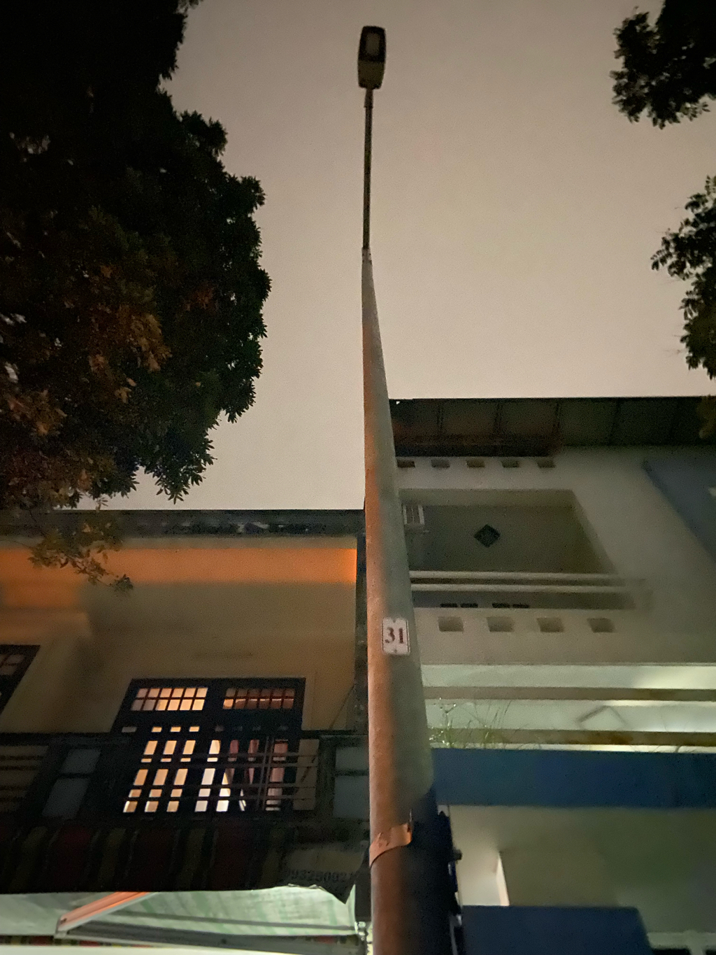 Cột số 31 đường Lê Thánh Tôn, Phú Xuân đã đỏ lại sau phản ánh lần đầu nhưng chỉ đỏ đến 23 giờ, thời gian còn lại đến sáng hôm sau không đỏ như những cột xung quanh?! Ảnh được chụp vào lúc 22g50 ngày 9.12.2025