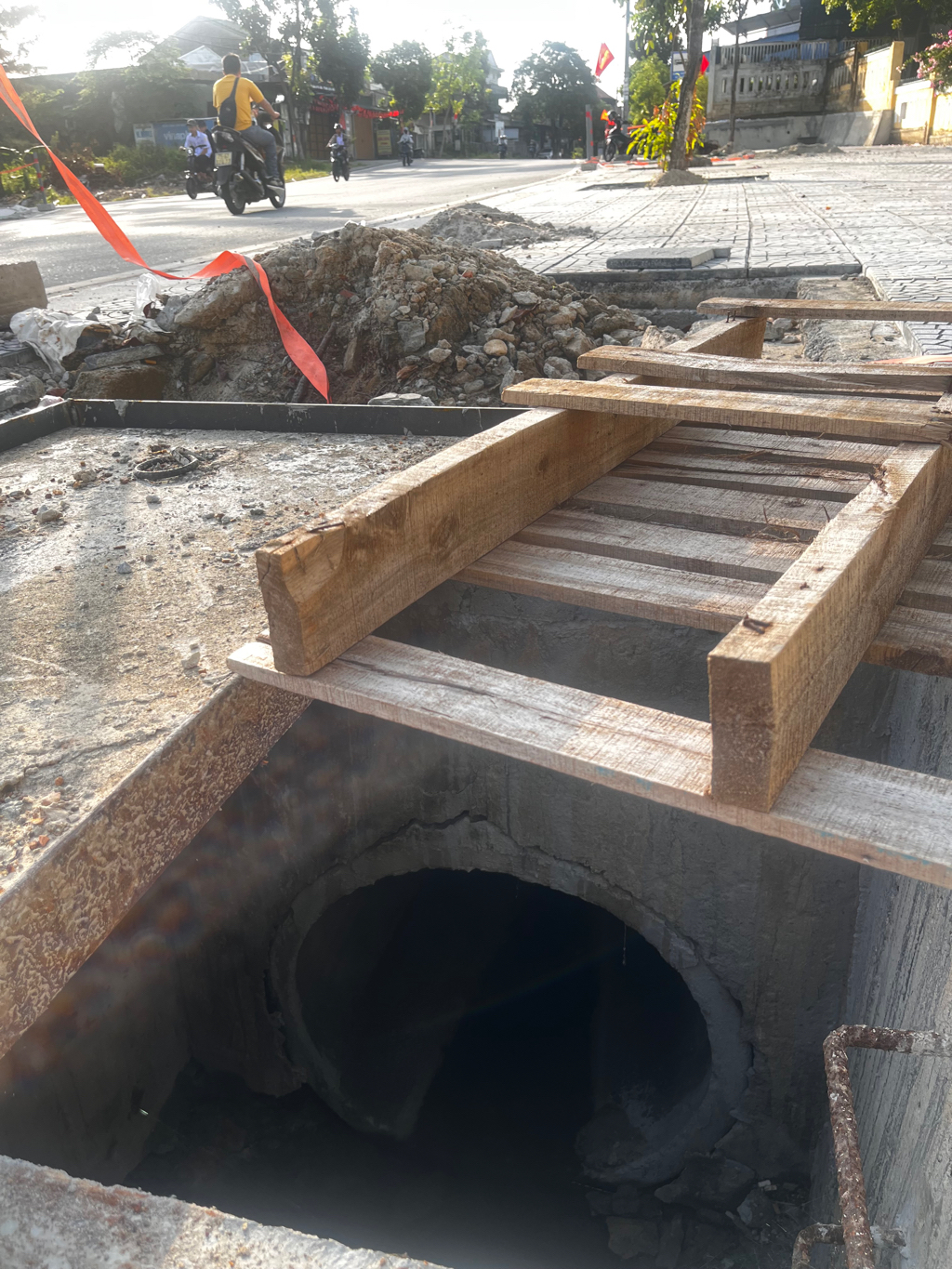 Thực tế này tiềm ẩn nhiều rủi ro: trong điều kiện thời tiết mưa bão đặc thù ở Huế, cây dễ bị bật gốc, gây nguy hiểm cho người đi đường. Về lâu dài, hệ thống rễ cây phát triển có thể bám, tác động và làm hư hỏng kết cấu cống thoát nước, ảnh hưởng đến hạ tầng đô thị.