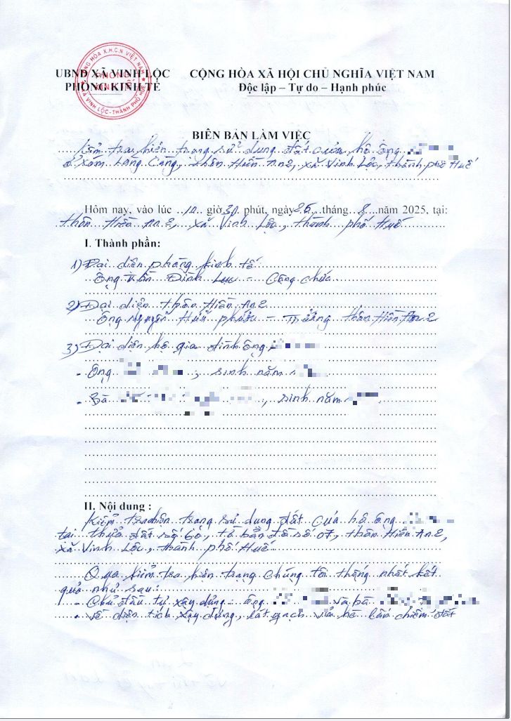 Vào ngày 26/8/2025 Phòng Kinh tế xã Vinh Lộc phối hợp với Ban quản lý thôn Hiền An 2 để kiểm tra thực tế công trình xây dựng hàng rào và việc sử dụng đất của hộ gia đình ông M ở xóm Làng Càng, thôn Hiền An 2, xã Vinh Lộc, thành phố Huế.