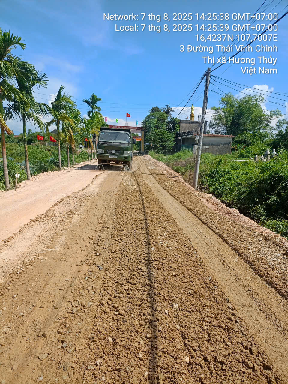 Sau khi phản ánh việc thi công đoạn đường Thái Vĩnh Chinh, phường Hương Thủy gây bụi ảnh hưởng đến cuộc sống, sức khỏe người dân. Đơn vị thi công phun nước đúng 1 lần từ đó đến nay không duy trì việc phun nước dẫn đến ảnh hưởng rất lớn đến sức khỏe của người dân. Mặt khác, ảnh hưởng rất lớn về an toàn giao thông, đơn cử 2 thanh niên tham gia giao thông, người trước chạy bụi, người đi sau tầm nhìn bị hạn chế dẫn đến va chạm và đánh nhau. Tha thiết kiến nghị cơ quan chức năng yêu cầu đơn vị thi công duy trì biện pháp phun nước thường xuyên để đảm bảo an toàn giao thông và sức khỏe của người dân. Ngày chụp ảnh 03/8/2025 tại đường Thái Vĩnh Chinh, tổ 2 phường Hương Thủy.