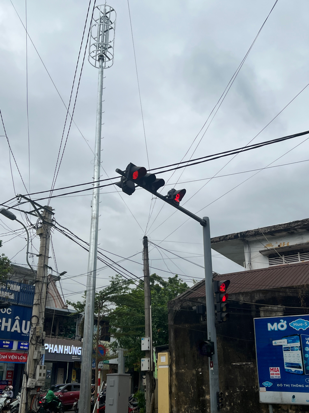 Hiên tại ngay ngã tư Nhật Lệ - Đinh Tiên Hoàng vừa mới chôn cột đèn rất rất cao, chưa lắp đèn…trong lúc chờ thi công công đoạn tiếp theo, đề đảm bảo an toàn cho những hộ dân sống gần và người qua lại, đề nghị cơ quan quản lí cần sớm cho đấu nối hệ thống chống sét sớm nhất.Ảnh chụp lúc 16 giờ ngày 24/4/2026 tại phường Phú Xuân, tp Huế. Ghi chú: cột bằng kim loại, rất rất cao…