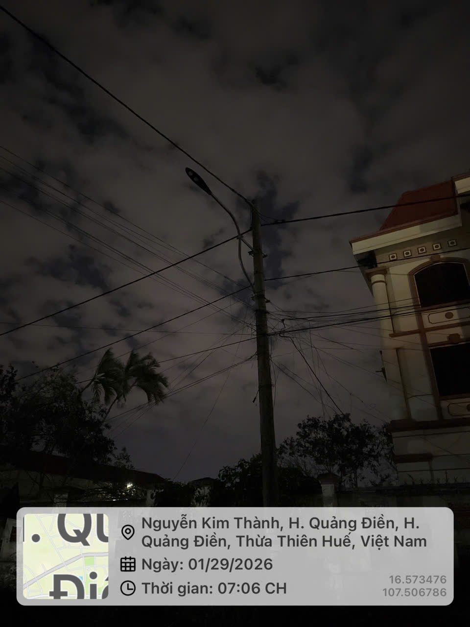 Hiện tại điện đường của Đường Đặng Hữu Phổ, Tổ dân phố Uất Mậu, xã Quảng Điền, thành phố Huế bên hông Kho Bạc của huyện Quảng Điền cũ bị cháy 3 bóng 4 tháng nay. Kính nhờ cơ quan chức năng quan tâm sửa chữa để người dân đi lại được an toàn. Trân trọng cám ơn!