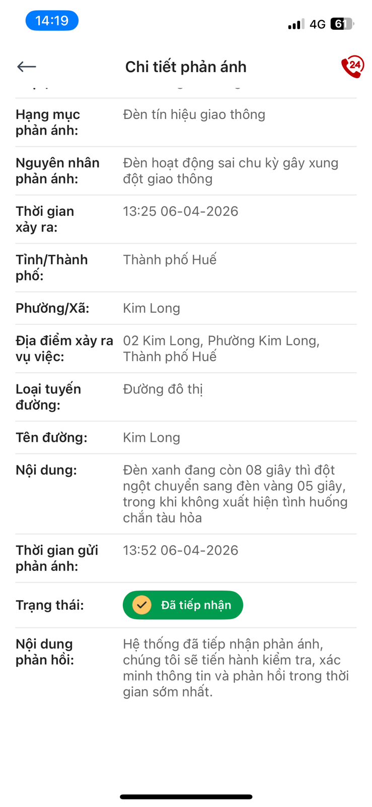 Phản ánh đã được tiếp nhận
