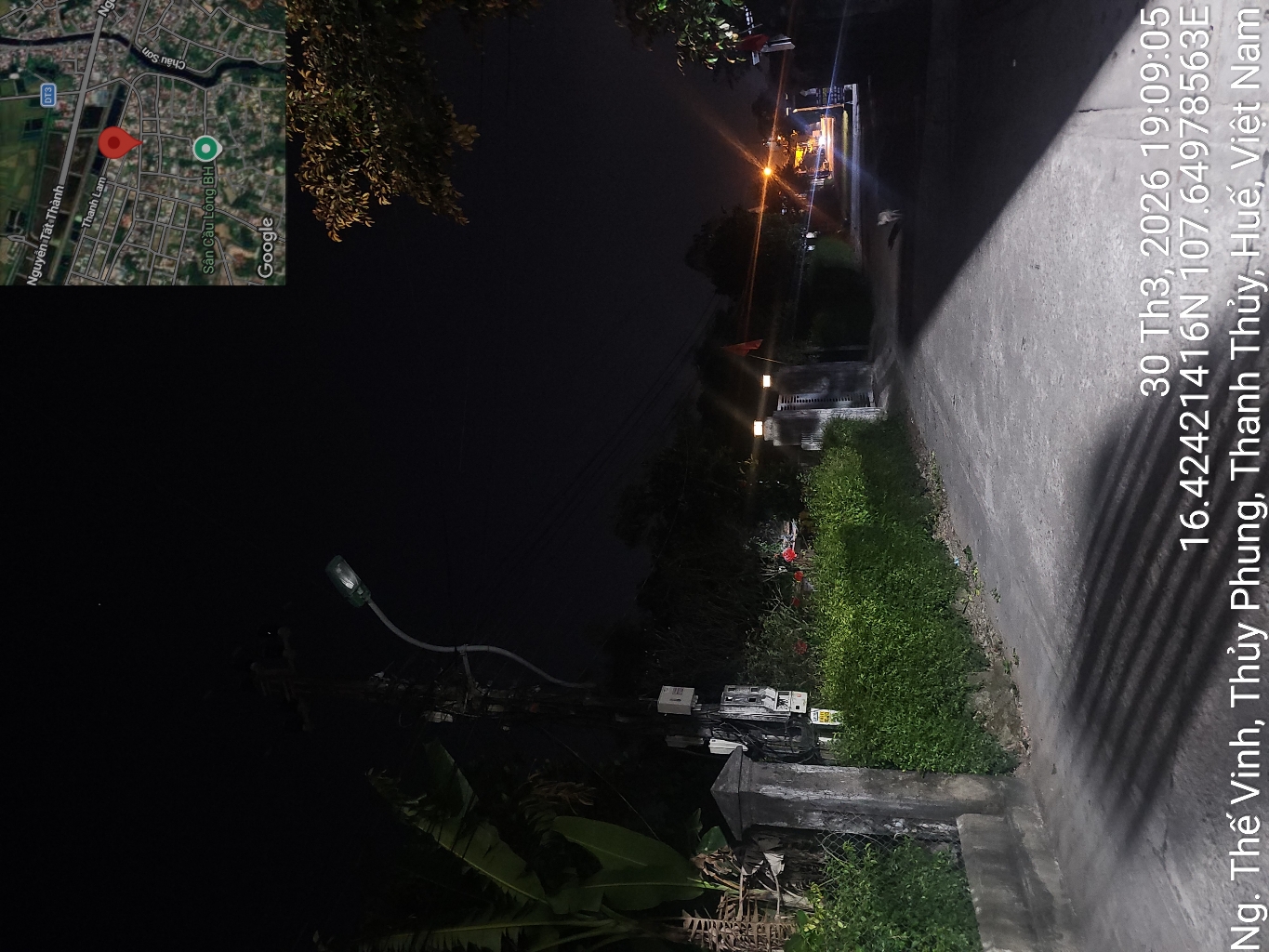 Đèn đường ngay ngã ba rẽ vào Hồ Thuỷ Tiên, đường Đại Nam giao với đường...