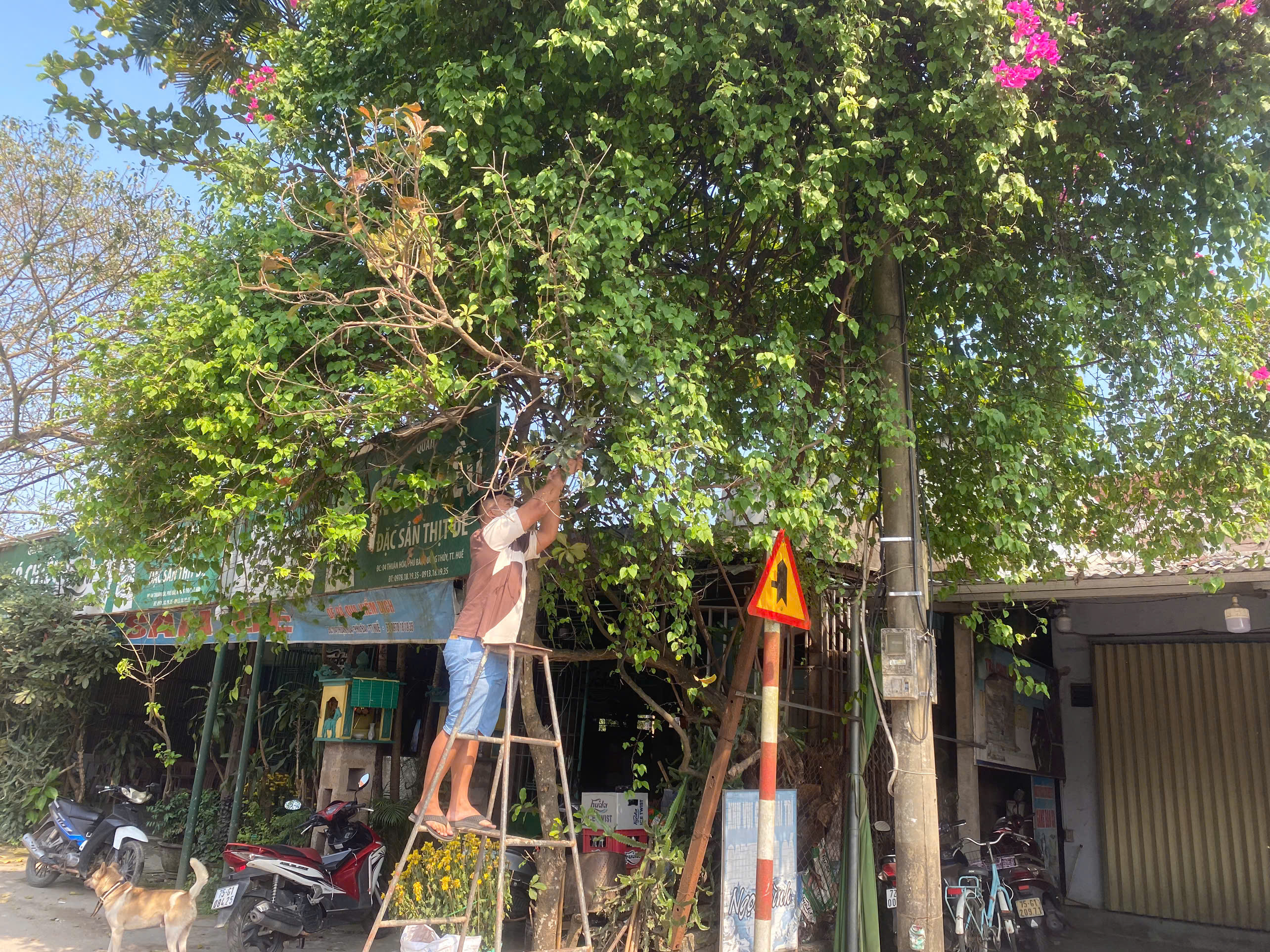 Đồng thời, Trung tâm Dịch vụ sự nghiệp công phường Phú Bài đã kiểm tra và yêu cầu hộ dân cắt tỉa cây bông giấy che khuất đèn chiếu sáng (Kèm hình ảnh).