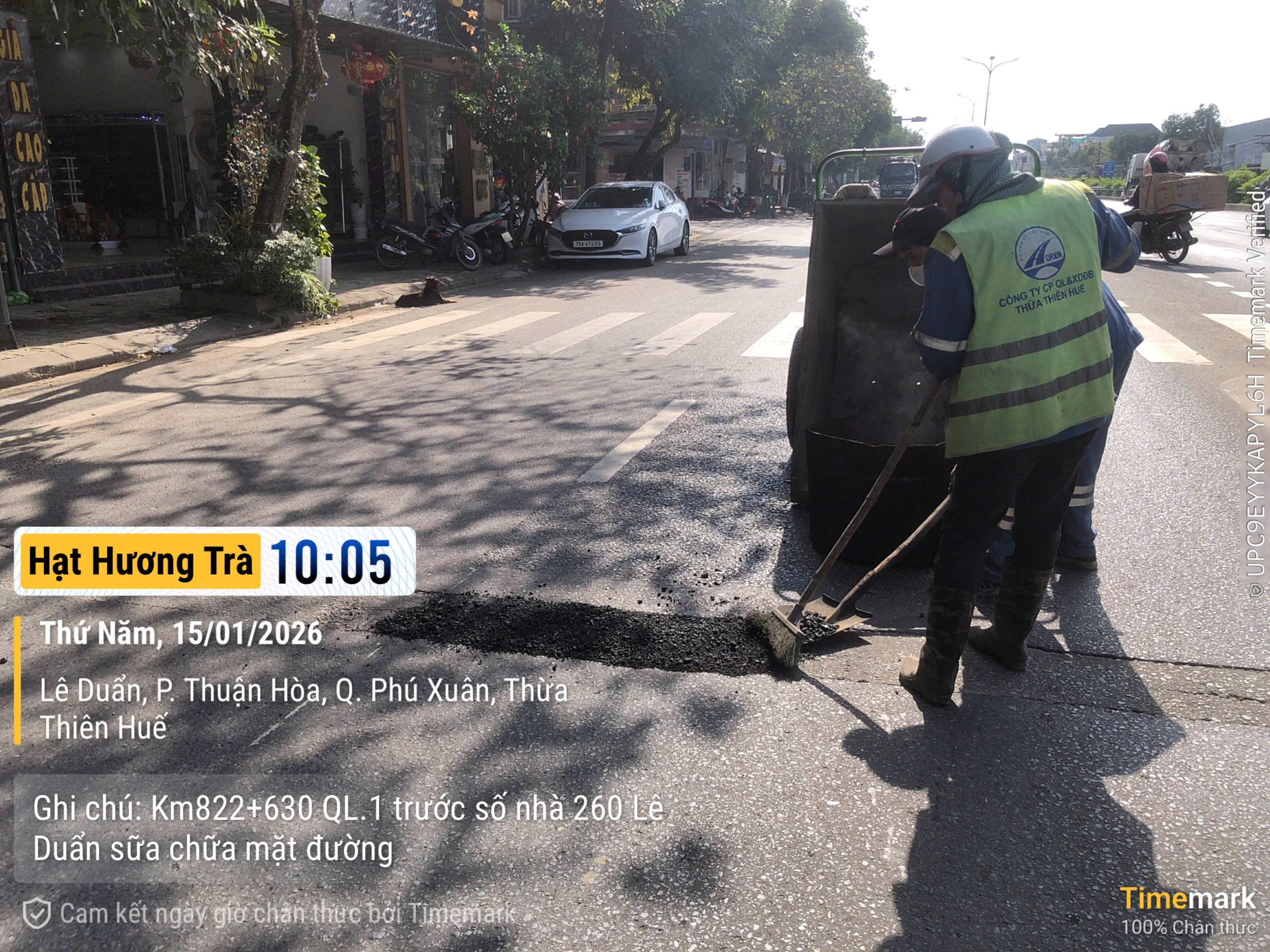 Đoạn tuyến Quốc lộ 1 đường Lê Duẫn từ số nhà 260 đến 270 có một vị trí đào rãnh mặt đường để chôn cáp đèn tín hiệu, hiện nay bị lún nhẹ nên xảy ra tình trạng xe tải đi qua gây tiếng động. Vấn đề này Văn phòng đã chỉ đạo đơn vị bảo dưỡng thường xuyên kiểm tra, bù phụ tạm vật liệu để đảm bảo êm thuận tránh tiếng ồn. Trong thời gian tới sẽ tiếp tục theo dõi, có biện pháp xử lý triệt để.