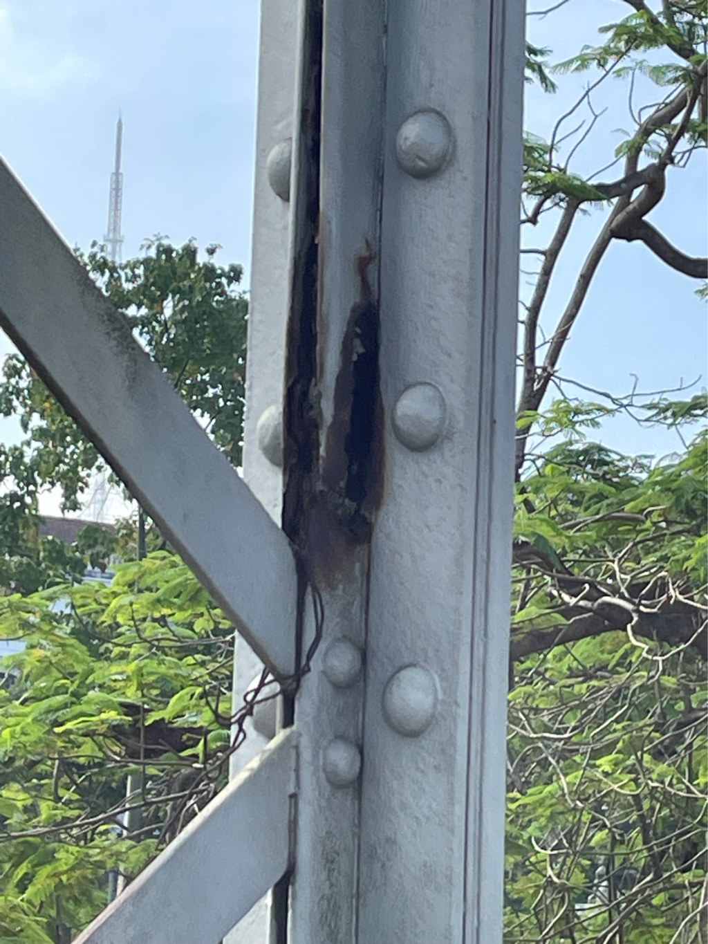Cầu Trường Tiền, vài thứ 6, tính từ phía đường Trần Hưng Đạo qua, nhịp bên phải nhiều vết rỉ, nhìn thấy sắt bung và nứt ra. Nếu không xử lý sớm thì chắc chắn sẽ bị hư hỏng nhiều hơn.